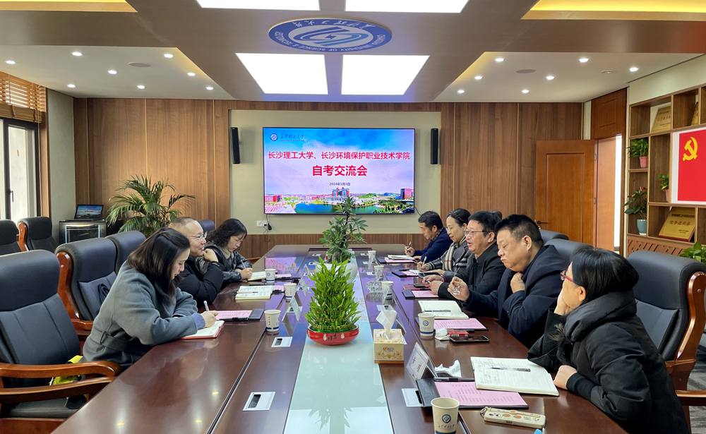 2024年1月3号上午,在金盆岭校区15教四楼会议室,长沙环境保护职业技术学院毕军平副校长、继教院谌桂君院长、继教院何晓敏主任一行,来云顶国际vip8866进行自考工作经验交流。云顶国际vip8866继教院院长邹兴平、副院长谢朝华及自考部相关人员,与来宾进行了座谈。