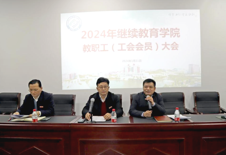2024年1月11日下午,继续教育学院教职工(工会会员)大会在14教A118会议室召开。大会由学院党总支副书记、副院长兼工会主席谢士成主持,全院教职工(工会会员)参加。