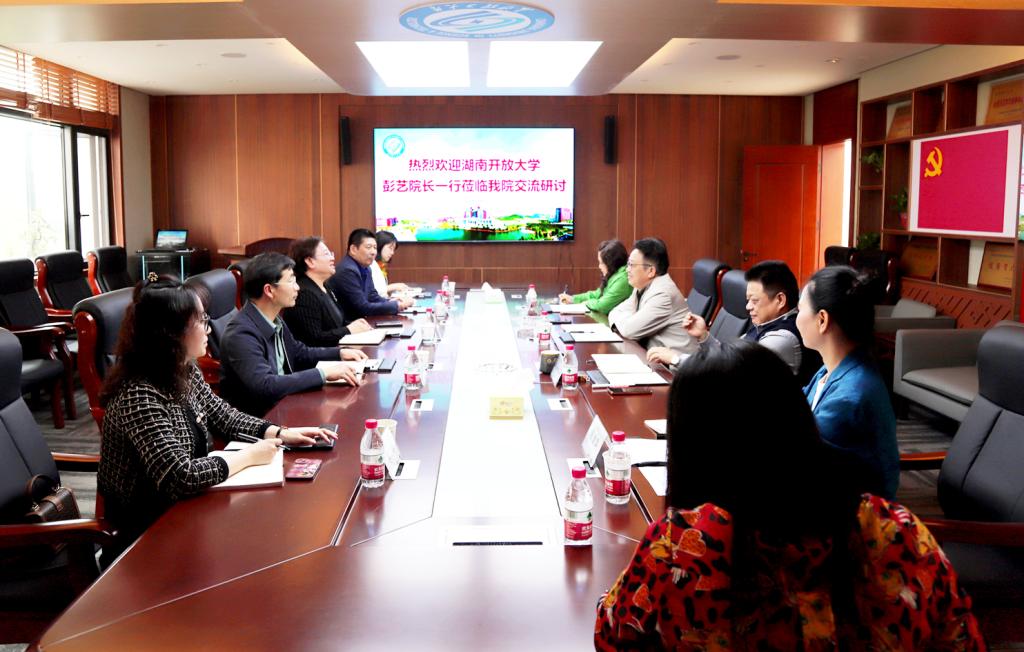 2024年4月8日下午,湖南开放大学培训学院院长彭艺一行5人到云顶国际vip8866继教学院进行调研交流。云顶国际vip8866继教学院院长邹兴平,副院长谢朝华、刘英姿,党委委员易国萍等,热情接待了湖南开放大学来宾,双方在云顶国际vip8866金盆岭校区15号教学楼四楼会议室进行了深入交流。