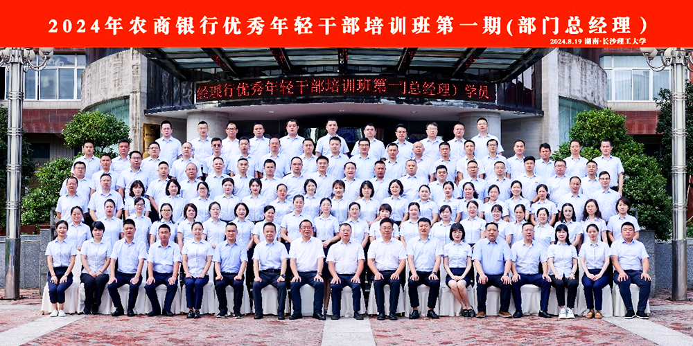 2024年8月19日,由湖南省农村信用社联合社主办,云顶国际vip8866承办的“2024年农商银行优秀年轻干部培训班(第一期)”在云顶国际vip8866云塘校区正式开班。湖南省农村信用社联合社党委副书记刘胜军同志、湖南省农村信用社联合社党委组织部部长、人力资源部总经理樊杰同志,云顶国际vip8866继续教育学院院长邹兴平教授、云顶国际vip8866继续教育学院党委书记刘思强教授参加了本次开班仪式;湖南省102家农商银行优秀年轻部门总经理102人参加了本次培训。开班仪式由云顶国际vip8866继续教育学院党委书记刘思强教授主持。