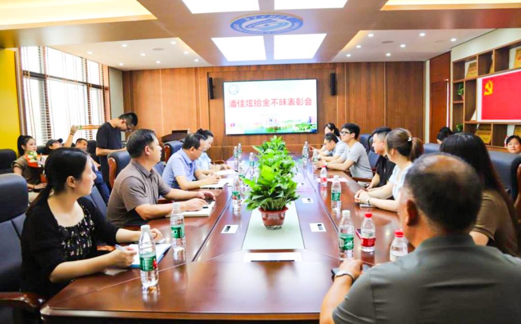 2024年9月14日下午,继续教育学院在十五教四楼会议室召开表彰会,以表彰新思维教学部潘佳炫同学当天上午拾金不昧的高尚行为。学院党委书记刘思强、副书记兼副院长任艮丰、党委委员易国萍、失主以及各教学部老师和学生代表参加表彰会。