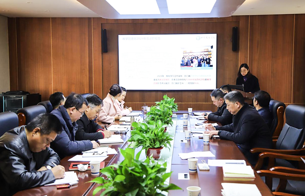 为深入学习贯彻习近平新时代中国特色社会主义思想,充分发挥党建引领作用,推动继续教育学院高质量发展迈向新台阶,同时增进学院各部门间的沟通交流、互学互鉴,形成携手共进的良好局面,2025年1月15日上午9点,继续教育学院在15教4楼会议室开展2024年度党支部书记双述双评暨部门主任工作述职交流会。学院领导班子成员和各部门主任参加会议,院长邹兴平主持。