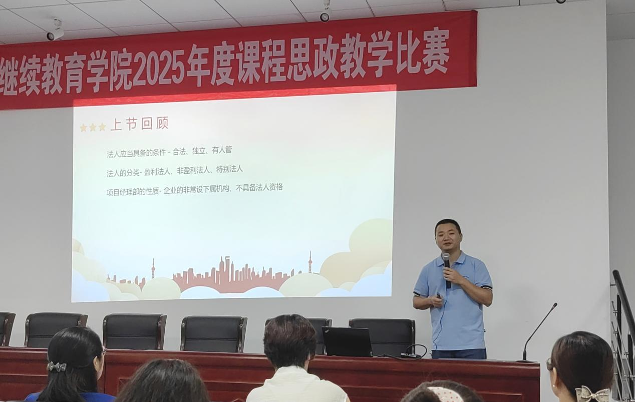 5月28日下午,我院在14教118教室举行了“继续教育学院2025年度课程思政教学比赛”。本次比赛特邀湖南省教创赛一等奖、全国教创赛三等奖获得者李祝平教授,城南学院副院长贺晖,计算机学院研究生办公室主任王华,学院教学督导组专家杨力君,湖南省课程思政教学比赛一等奖获得者张静担任评委,学院党委书记刘思强、副院长易国萍出席,合作机构40余名教师观摩了比赛。