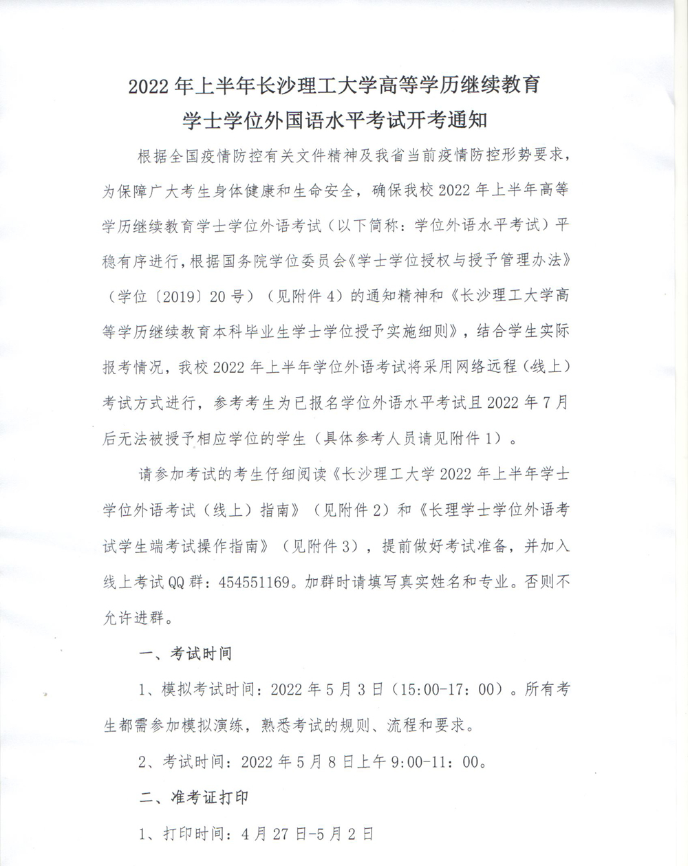 2022年上半年云顶国际vip8866高等学历继续教育学士学位外国语水平考试开考通知