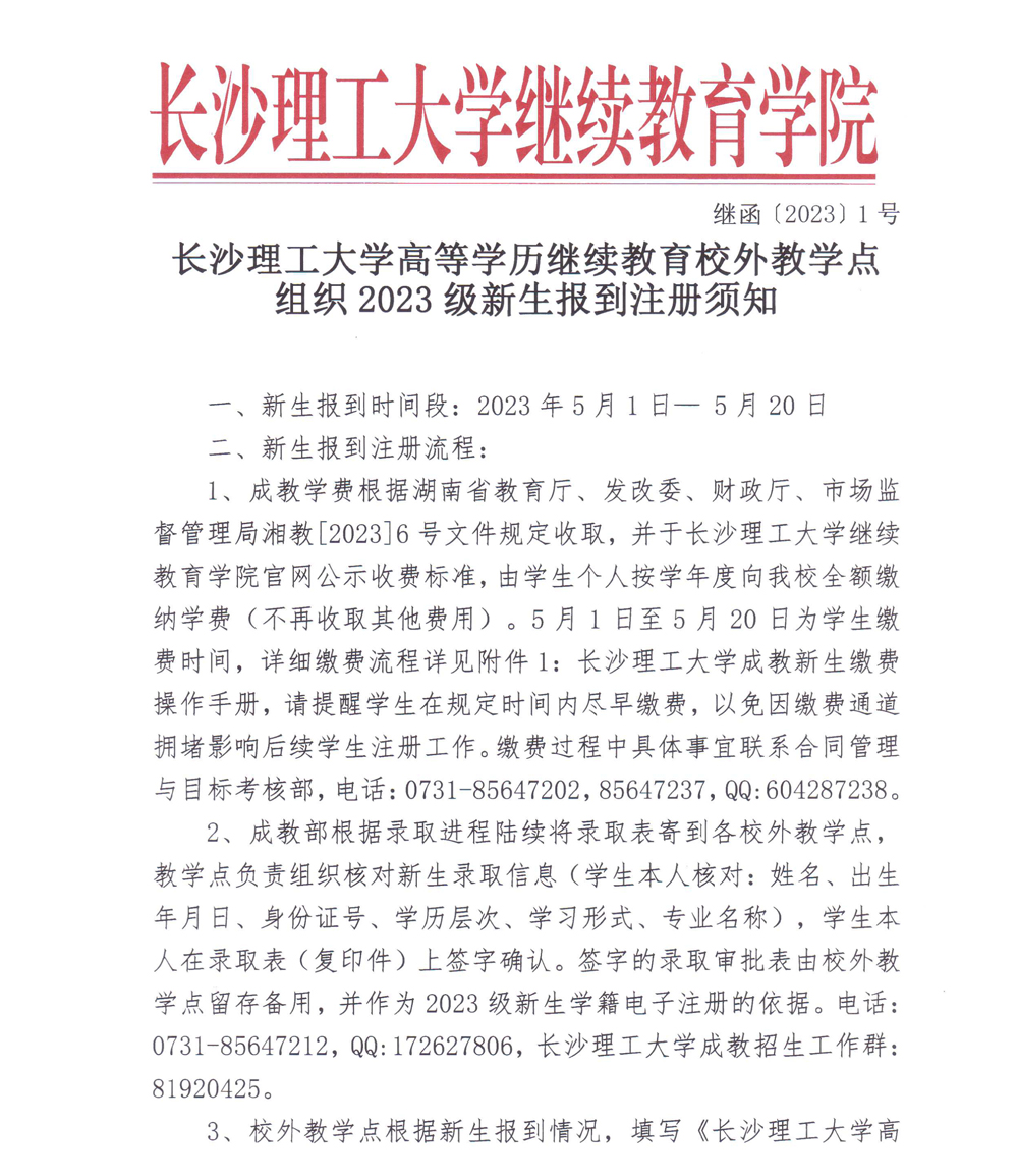 云顶国际vip8866高等学历继续教育校外教学点组织2023级新生报到注册须知