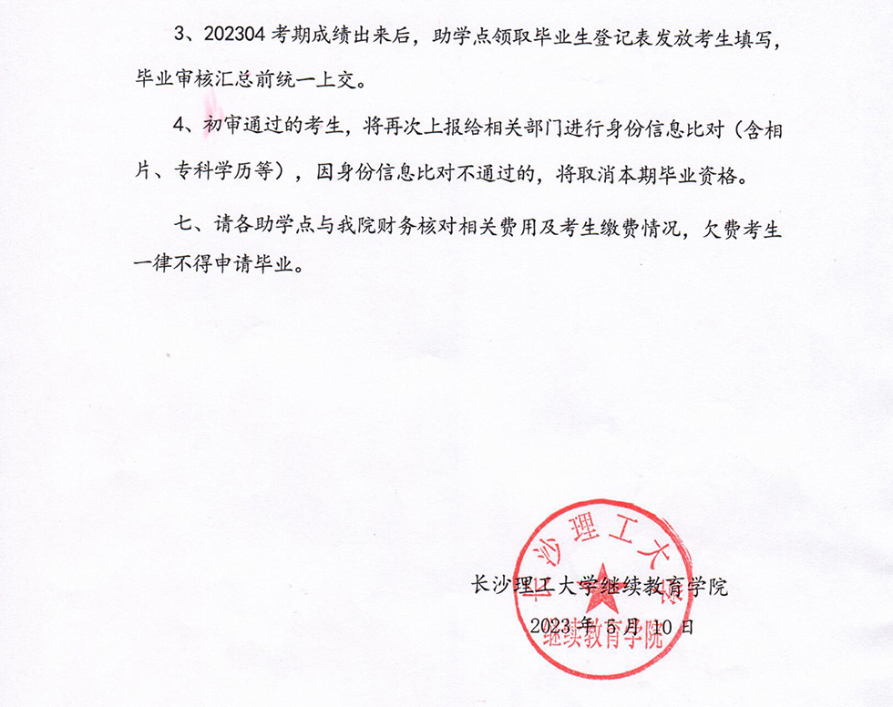 云顶国际vip8866成人高等教育校外教学点2023年6月期毕业工作须知