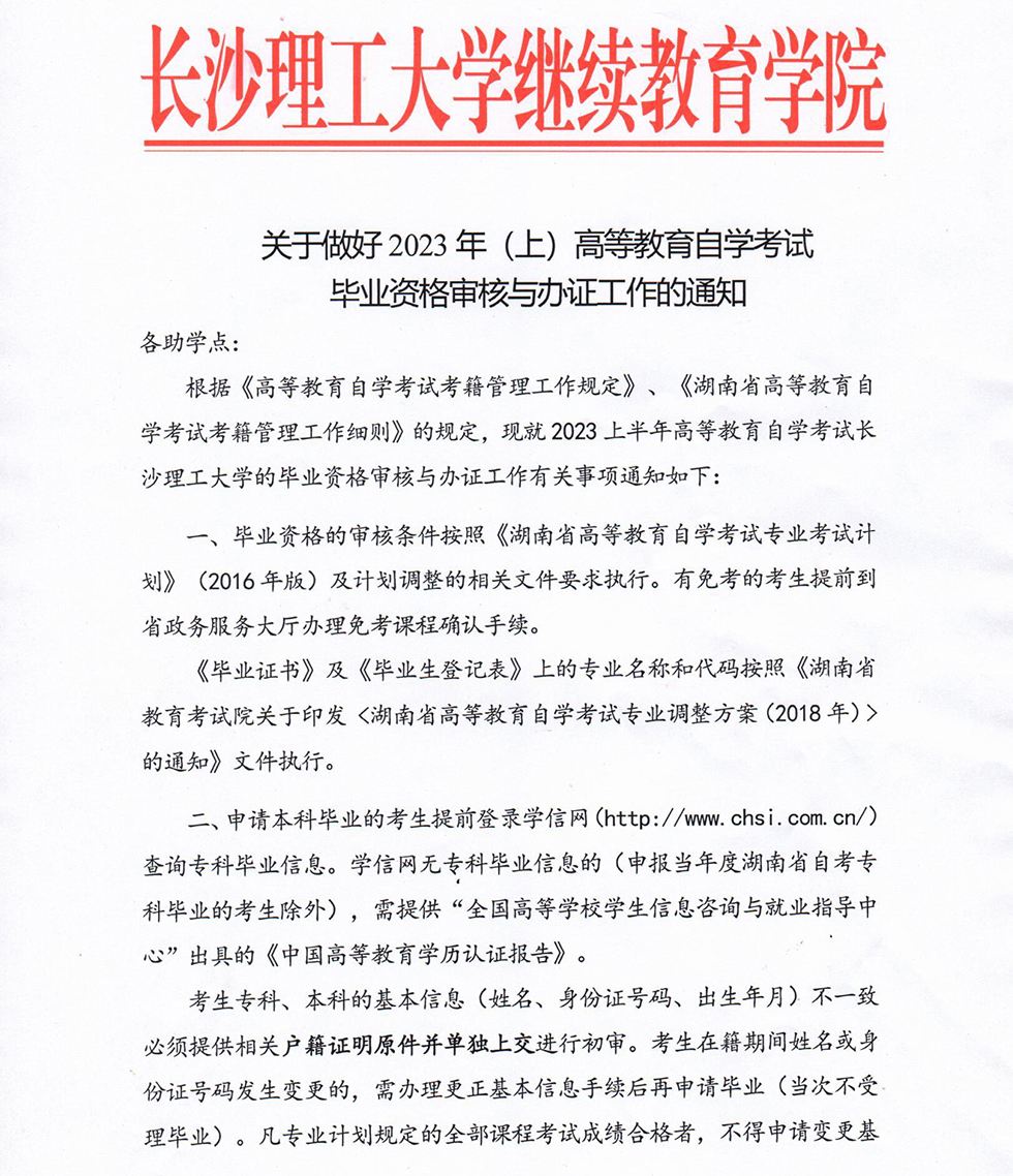 关于做好2023上半年高等教育自学考试毕业资格审核与办证工作的通知