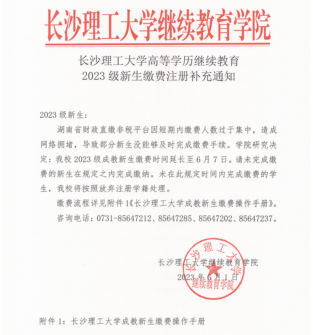 云顶国际vip8866高等学历继续教育2023级新生缴费注册补充通知