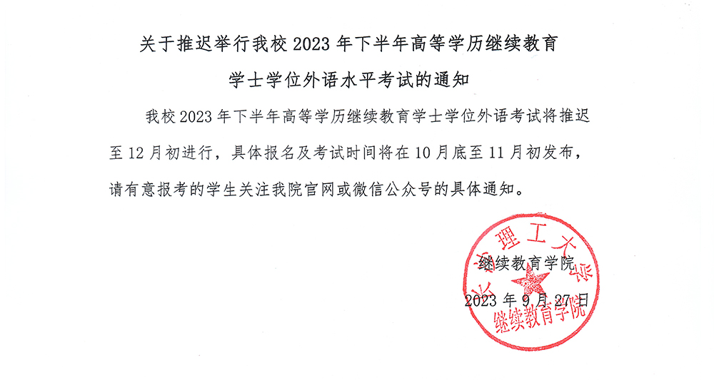 关于推迟举行云顶国际vip88662023年下半年学士学位外语水平考试的通知