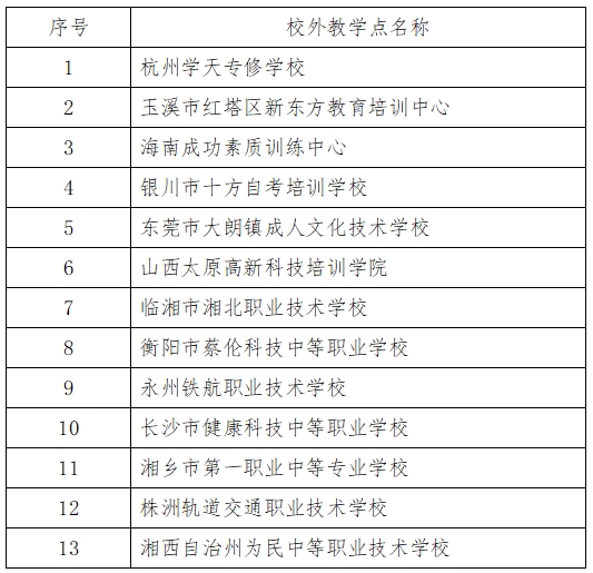 通过校外教学点考察组实地考察,经继教学院党政联席会研究讨论通过,并报学校党委会审定,同意杭州学天专修学校等13家单位申报云顶国际vip8866校外教学点,现予以公示: