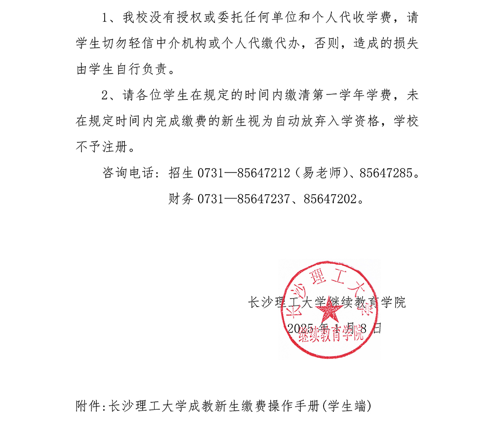 云顶国际vip8866成人高等教育2025级新生报到缴费通知