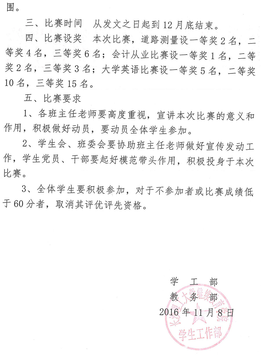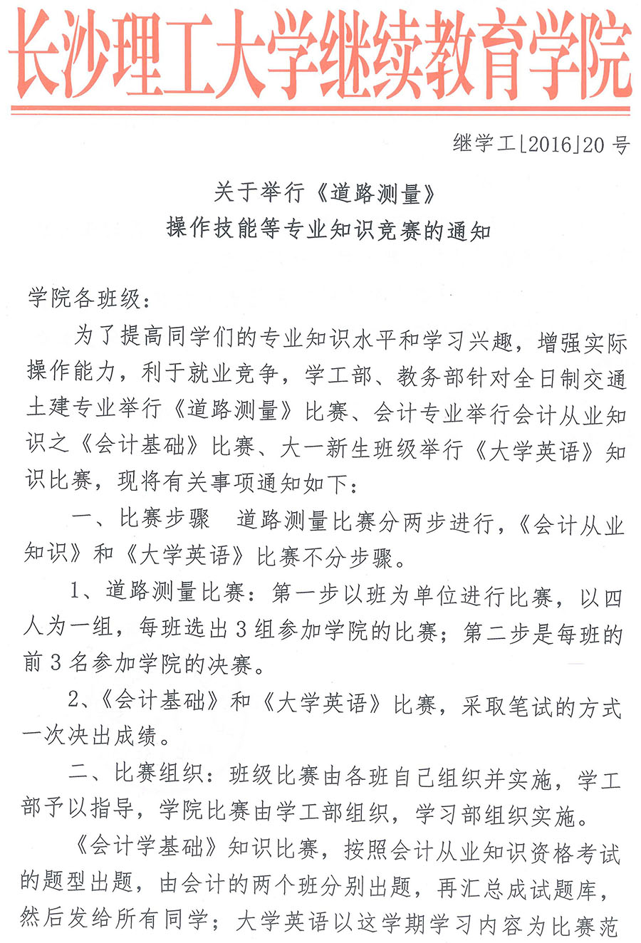 关于举行《道路测量》操作技能等专业知识竞赛的通知