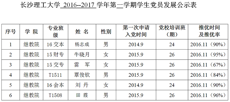 经学生本人申请,学生党总支培养考察、民主推荐,各学院党委审查研究,报校党委组织部同意,拟将以下学院学生作为本学期发展对象(见附件)。为增强党员发展工作的民主程度和透明度,更广泛地接受群众监督,现将本次发展对象的有关情况进行公示,如有异议,请于公示期内提出书面或口头反馈。 公示时间:2016年11月17 日至2016年11月24 日 接待来访地点:校党委组织部 (办公一号楼A505) 电话:85258025 中共云顶国际vip8866委员会组织部 2016年11月17日