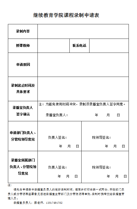 云顶国际vip8866继续教育学院课程录制申请表
