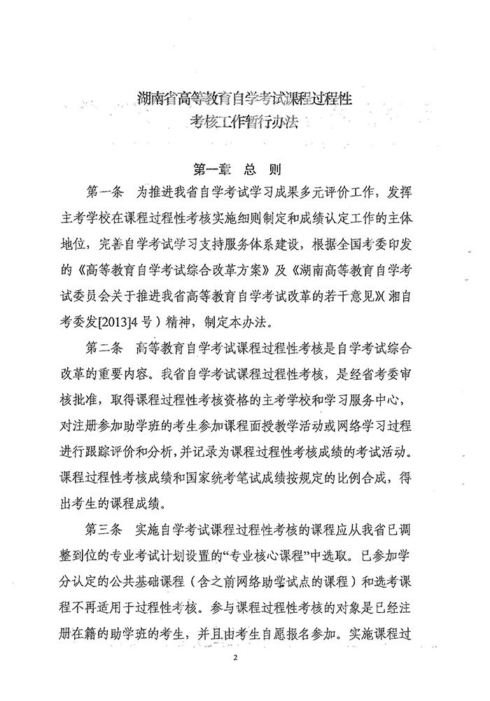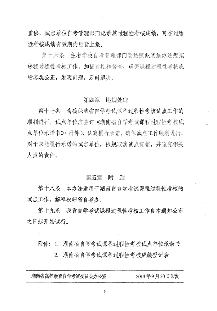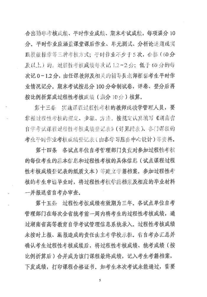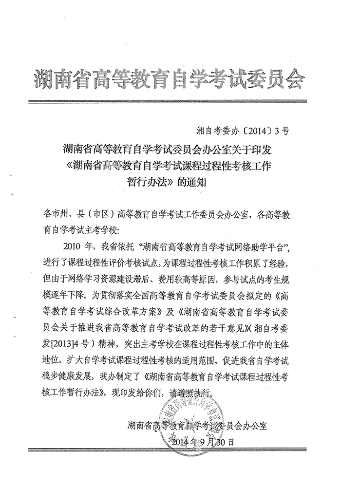 湖南省高等教育自学考试课程过程性考核工作暂行办法的通知