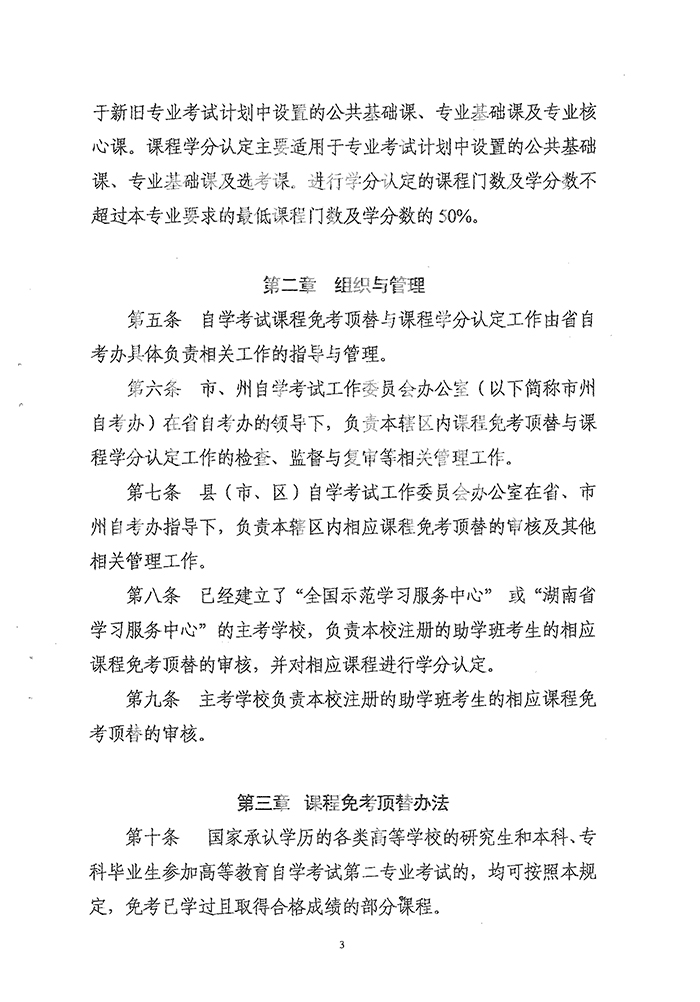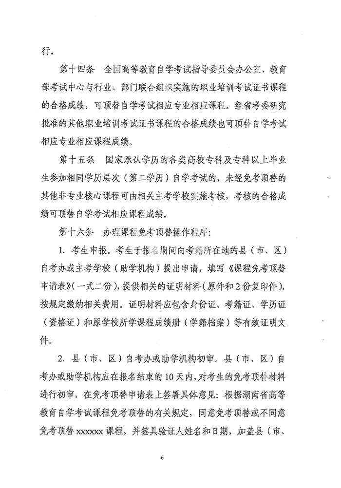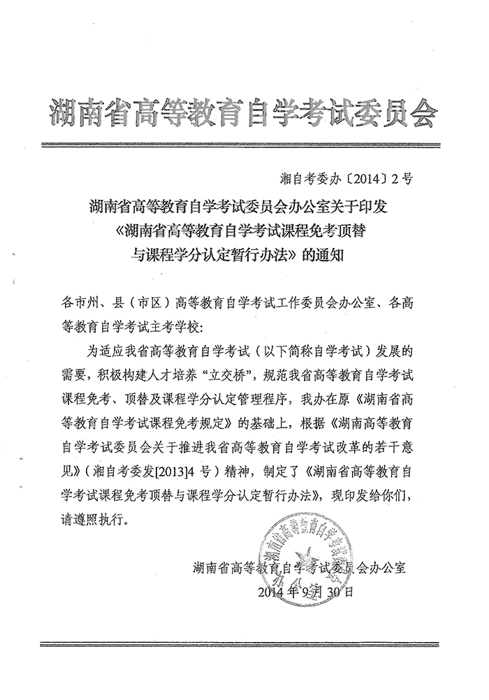 湖南省高等教育自学考试课程免考顶替与课程学分认定暂行办法的通知