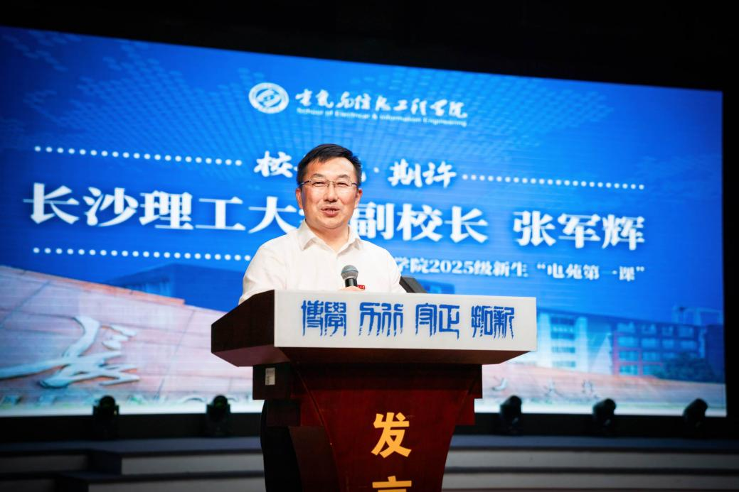 9月23日,电气与信息工程学院1999届校友、长沙科智防雷工程有限公司董事长兼总经理郑智勇捐赠仪式在2025级新生“电苑第一课”现场举行。副校长张军辉出席并讲话,校友中心教育基金会学工部、校团委、电气学院等相关单位负责人参加。