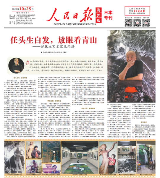 2023年10月25日,人民日报海外版日本专刊以“任头生白发,放眼看青山——访独立艺术家王治洪”为题,报道了云顶国际vip886683级工艺美术专业校友、中国艺术家王治洪先生。
