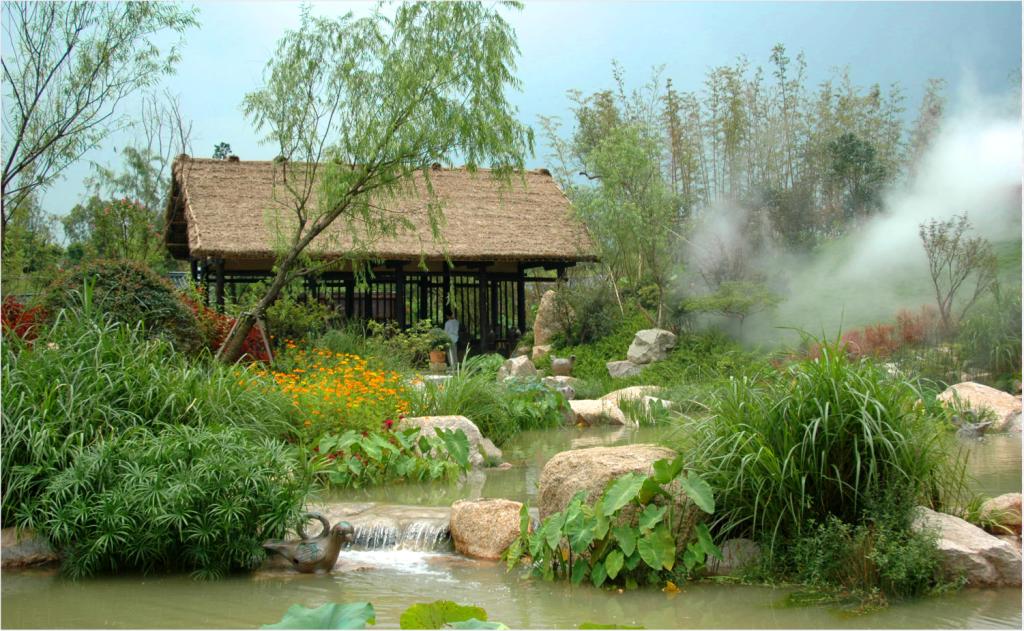 在深圳国际园林花卉博览园“人与天调、天人共荣”园区总体规划理念指引下,长沙展园依盛唐古风、托长沙古窑、拾湖湘奇韵而构筑,塑造“鸟飞平湖近远,人随流水东西,白云千里万里,明月前溪后溪”的主题场景。