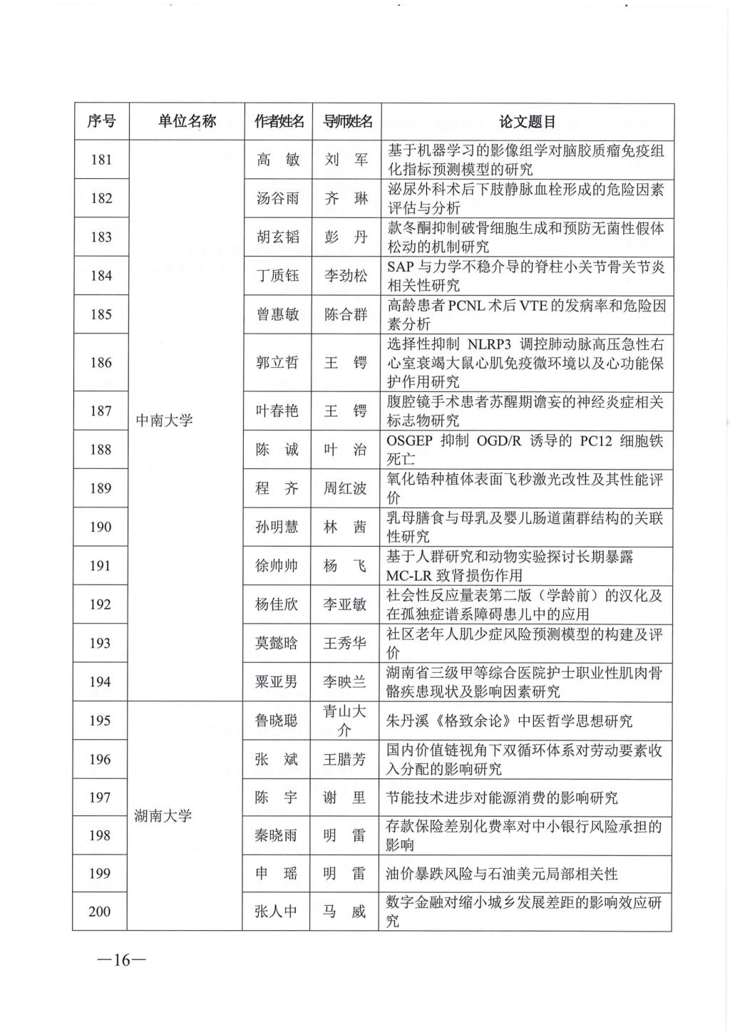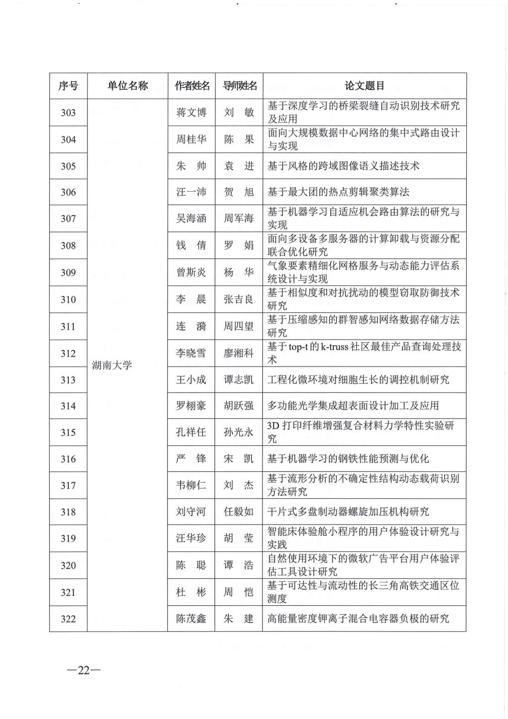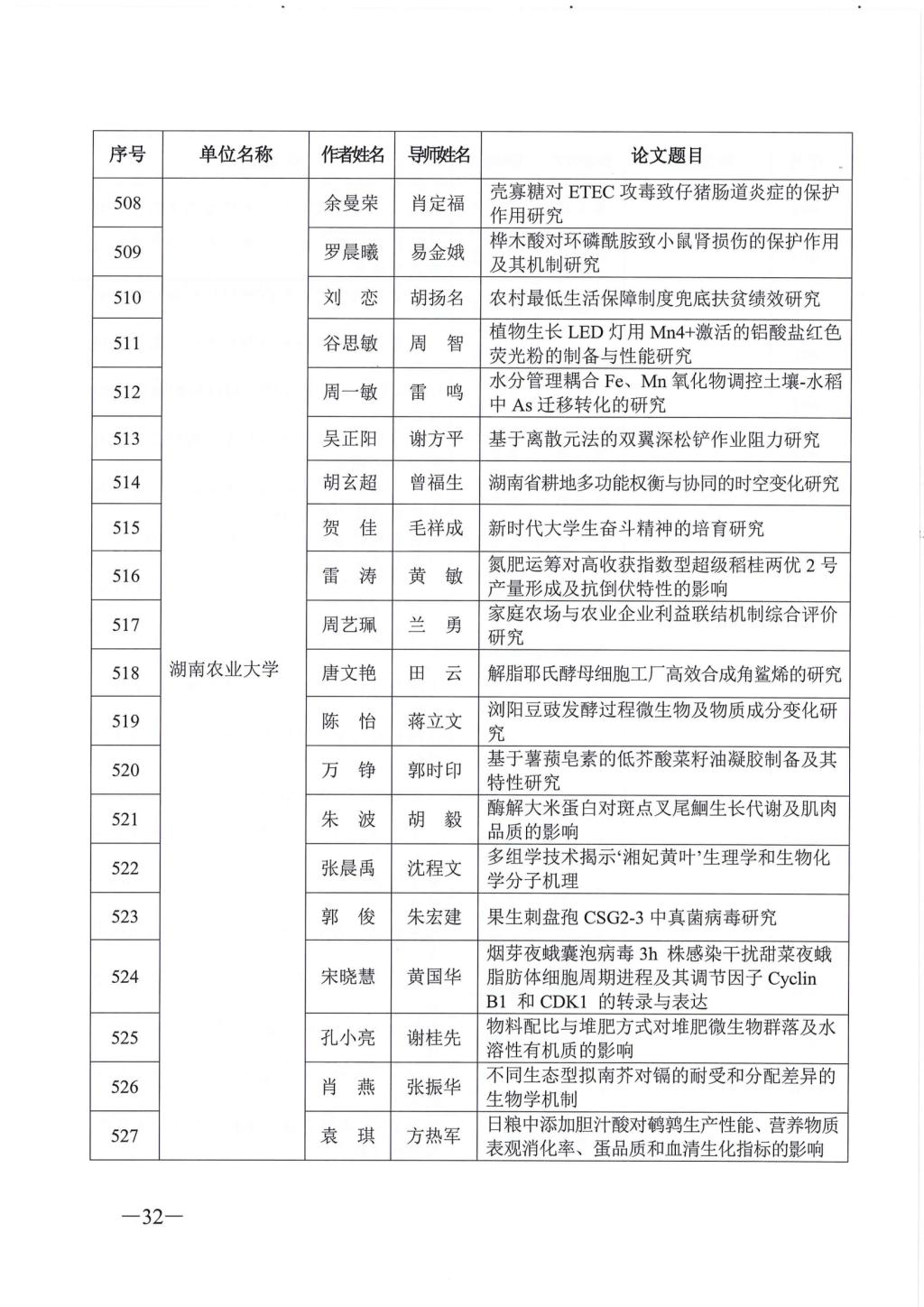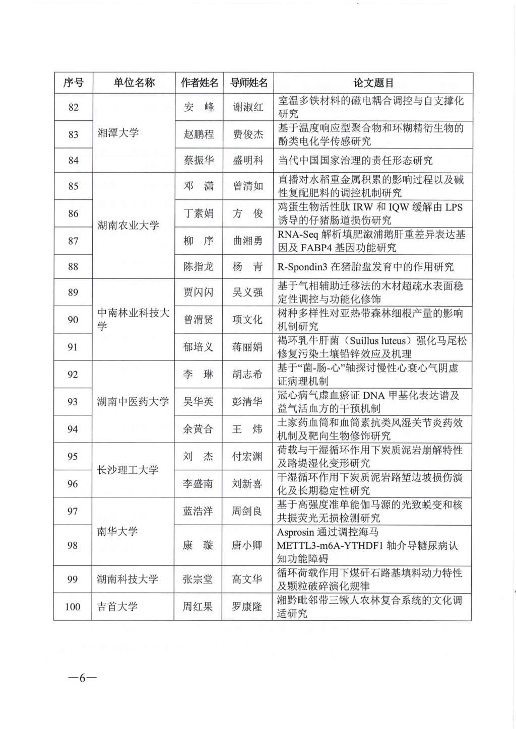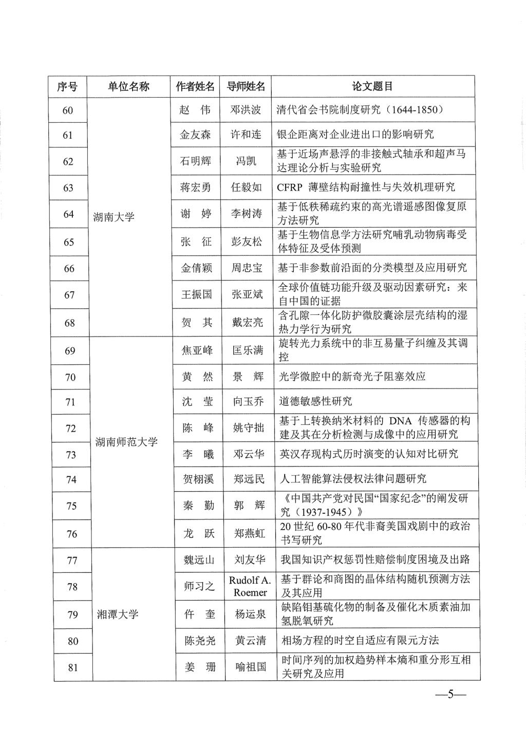 关于公布2023年湖南省优秀博士硕士学位论文名单通知