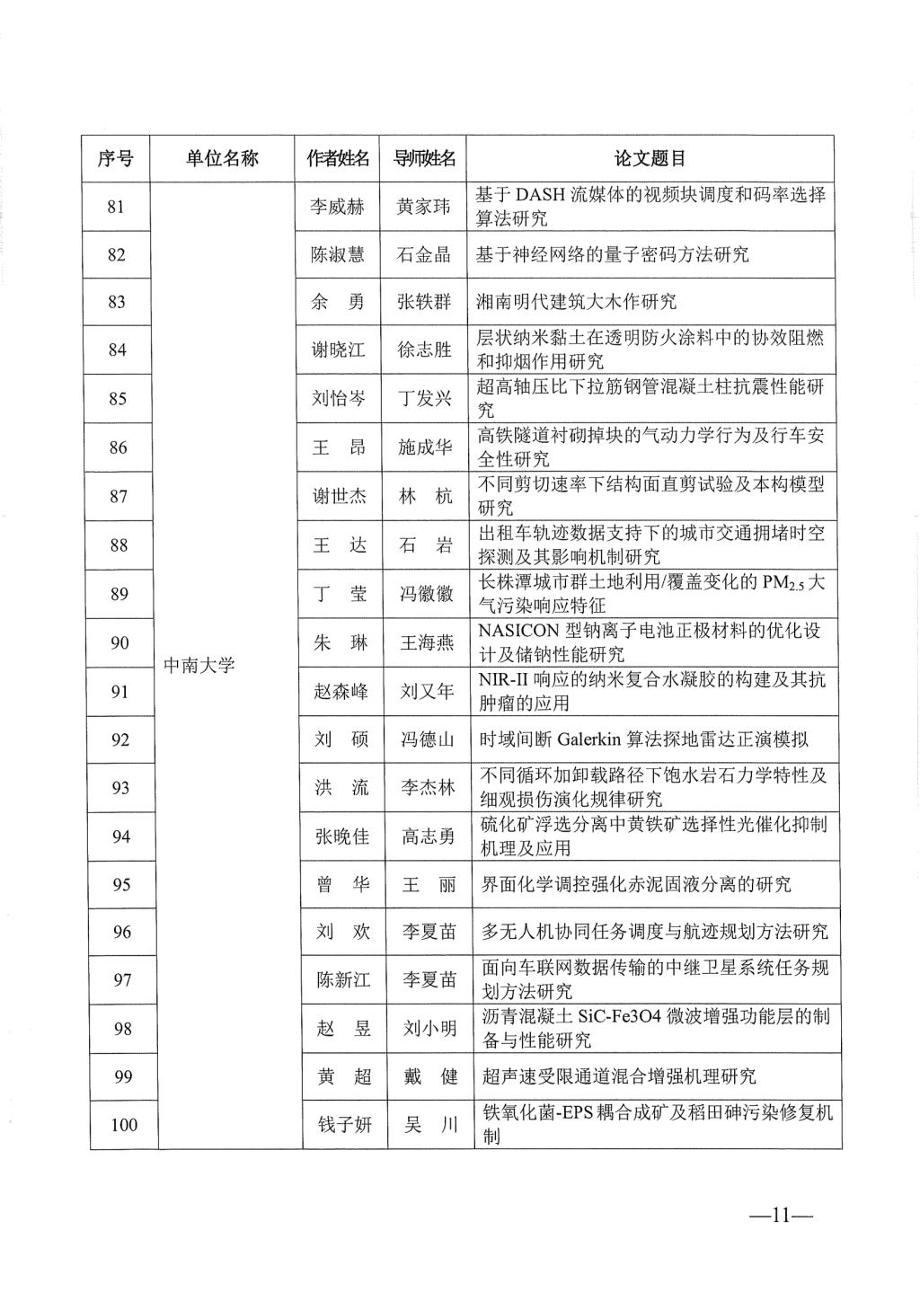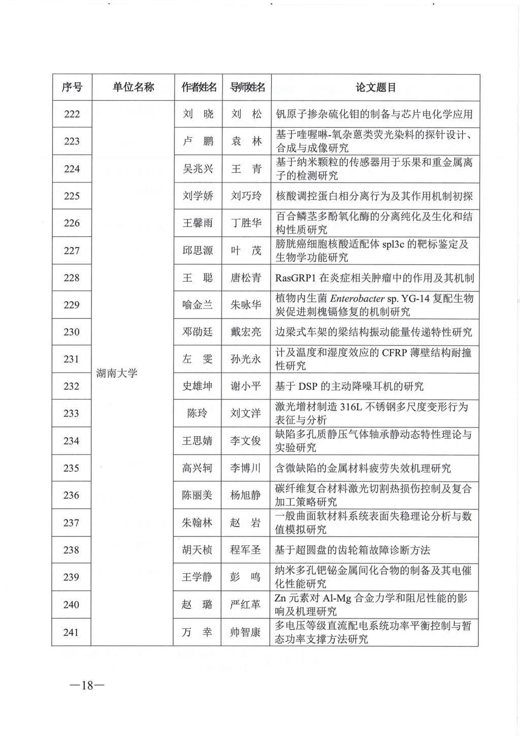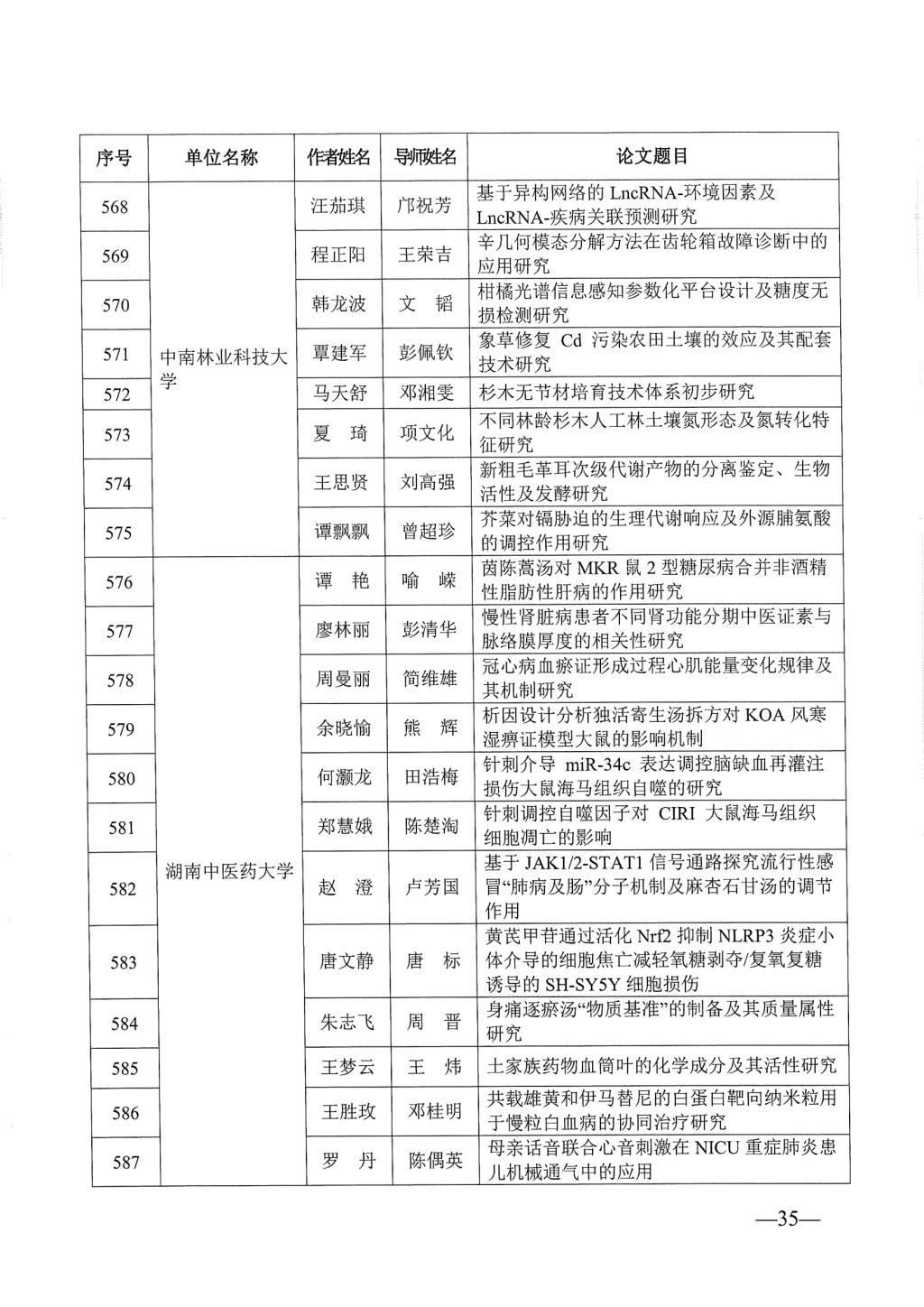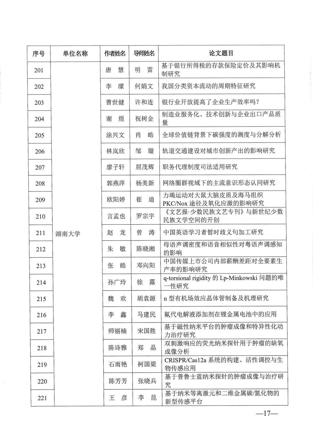 关于公布2023年湖南省优秀博士硕士学位论文名单通知