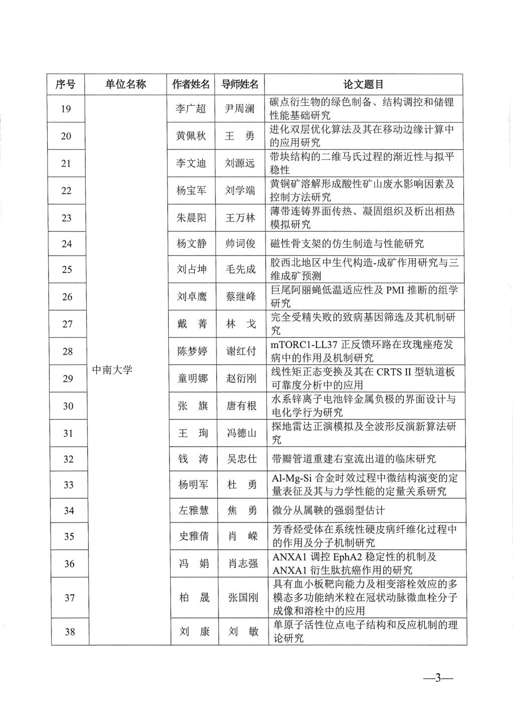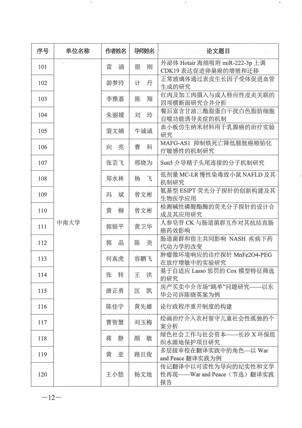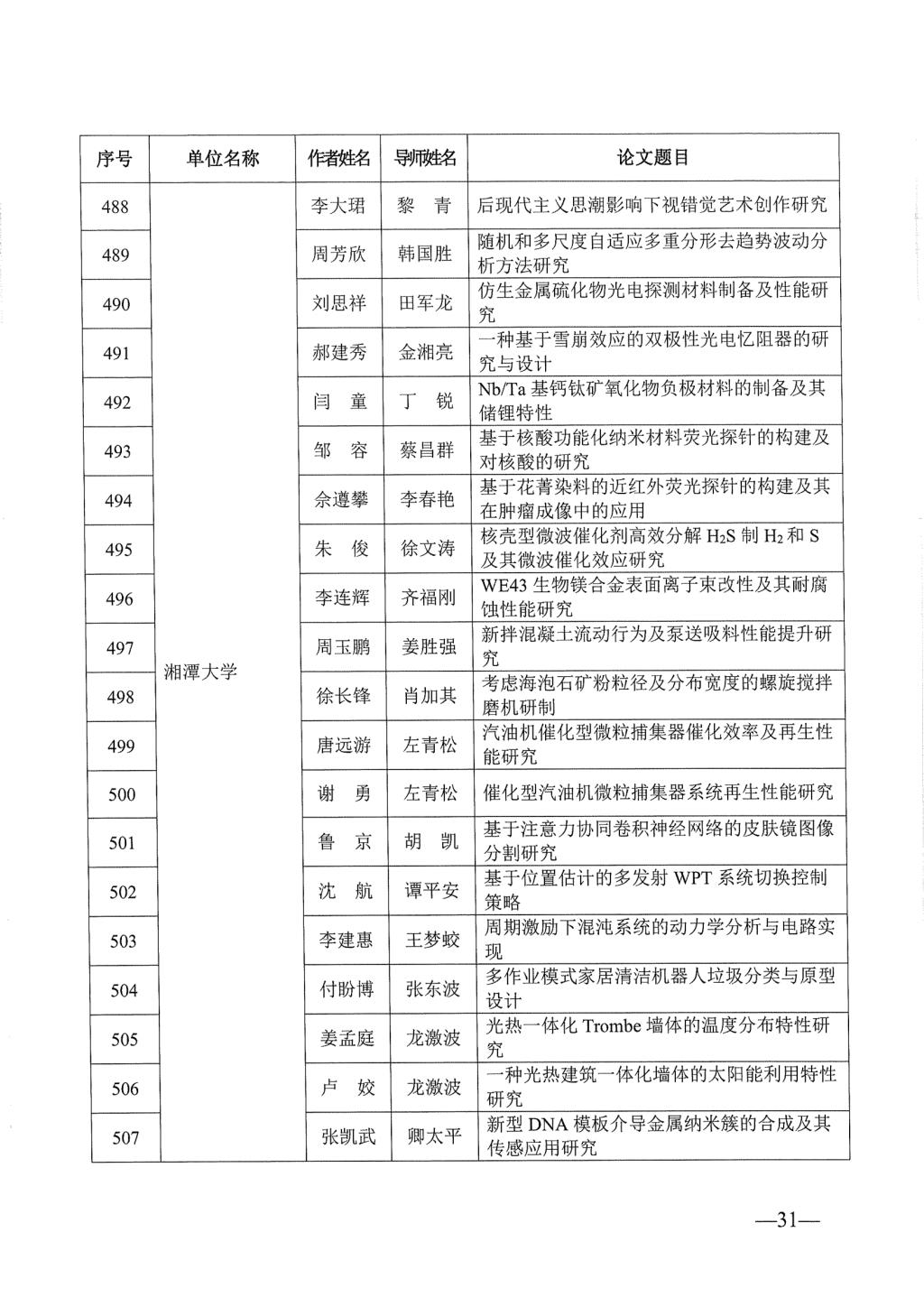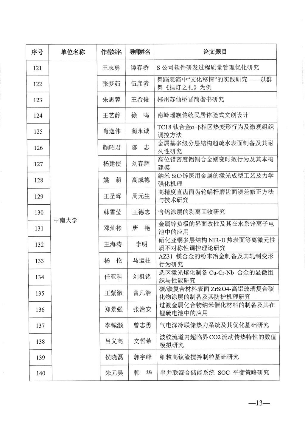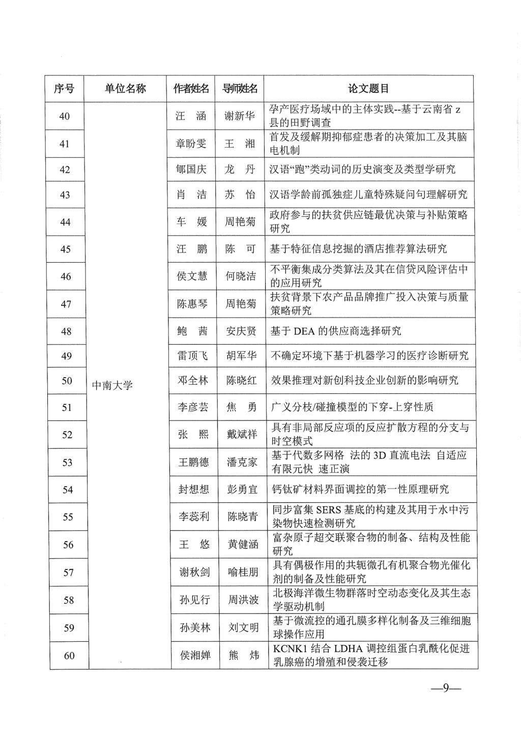 关于公布2023年湖南省优秀博士硕士学位论文名单通知