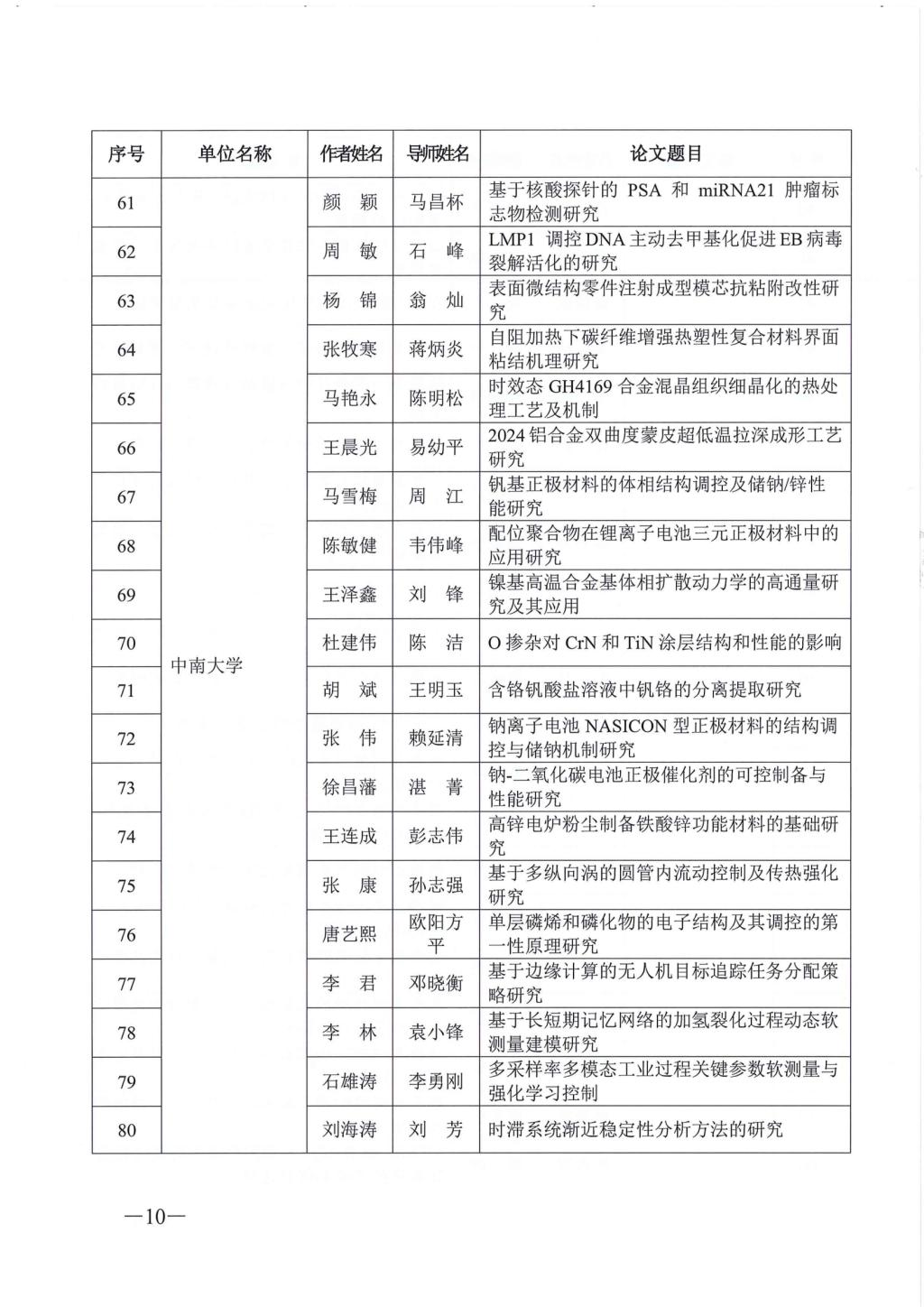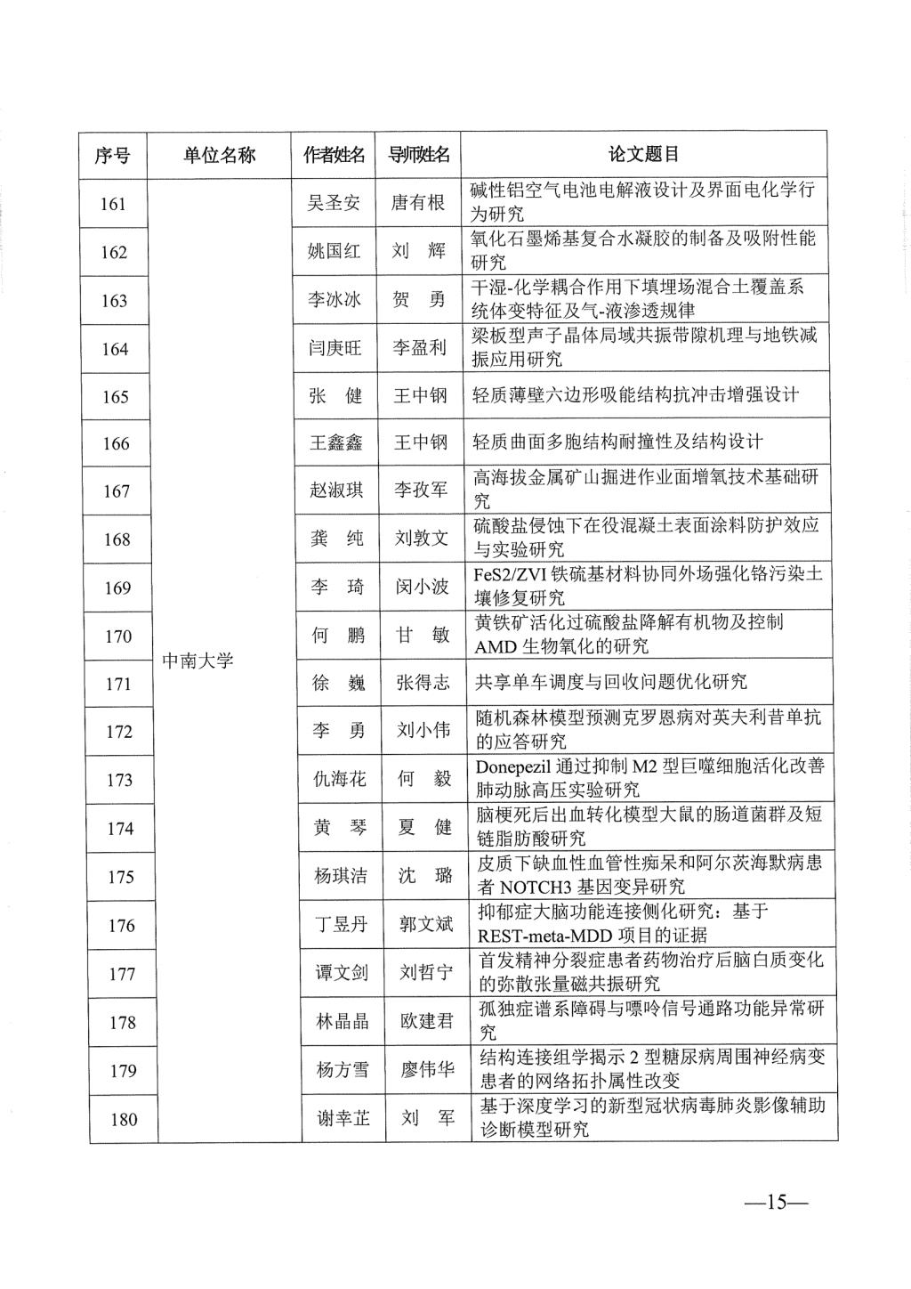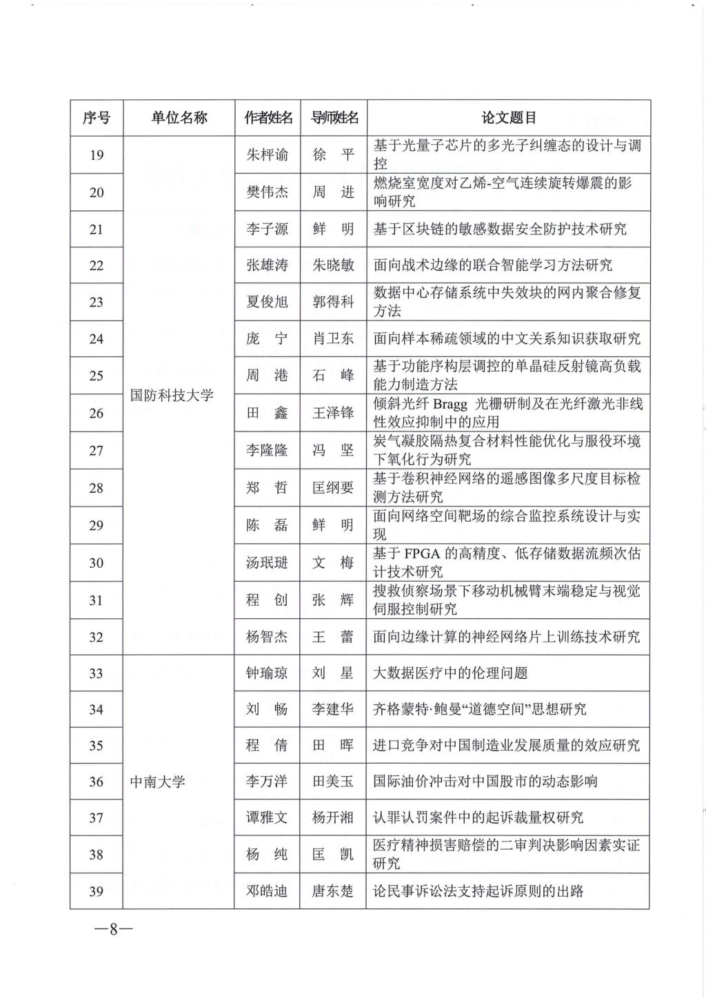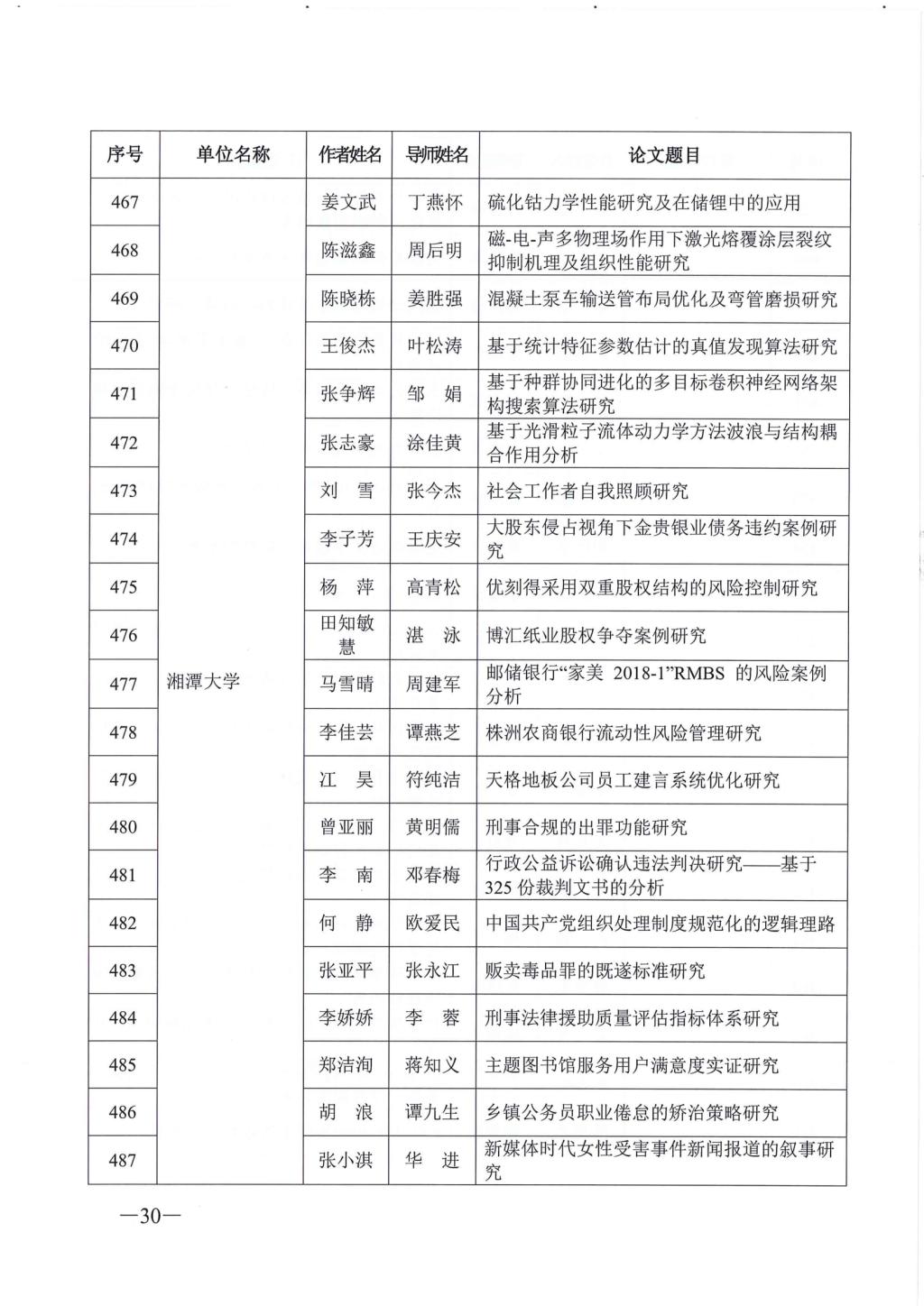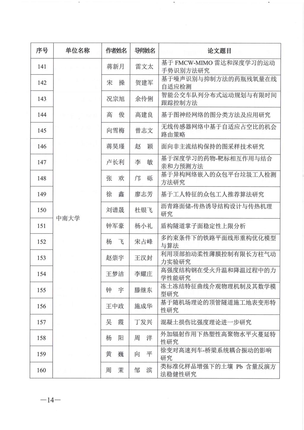 关于公布2023年湖南省优秀博士硕士学位论文名单通知