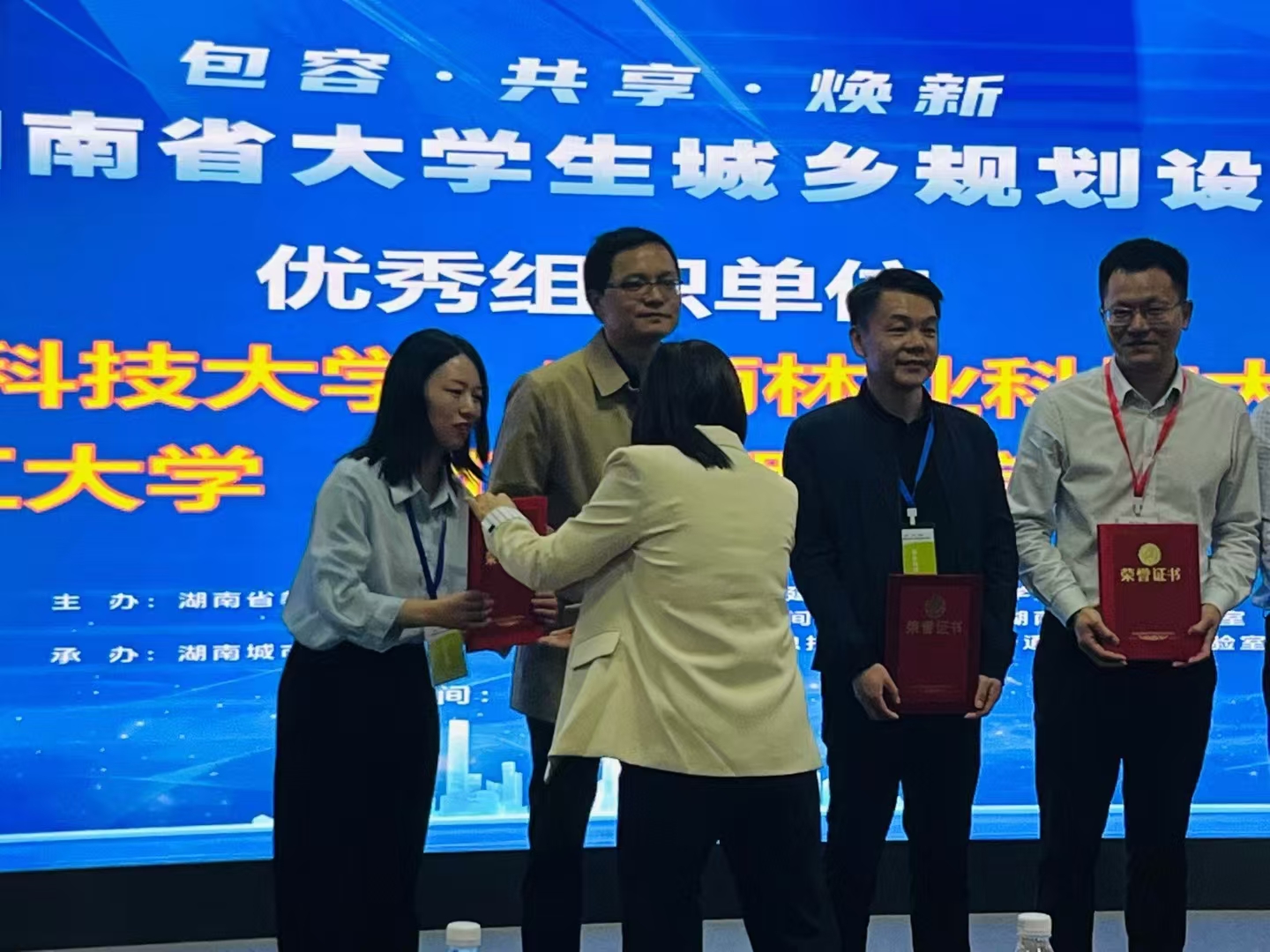 10月18日至20日,由熊鹰书记领队,李洪老师、唐艳丽老师等云顶国际vip8866建筑学院师生17人参加了湖南省教育厅主办、湖南城市学院承办的第十届湖南省大学生城乡规划设计竞赛及''国土空间规划教学研讨会''。