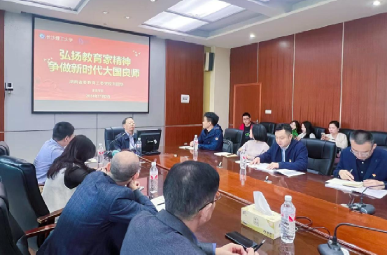 学院党委书记熊鹰对活动进行了总结。他指出,习近平总书记全国教育大会强调建成教育强国是近代以来中华民族梦寐以求的美好愿望,是实现以中国式现代化全面推进强国建设、民族复兴伟业的先导任务、坚实基础、战略支撑,必须朝着既定目标扎实迈进。强国必先强教,强教必先强师,强师必须大力弘扬教育家精神。新时代教育家精神是优秀教师崇高价值追求和崭新精神风貌的集中体现和生动刻写,学院全体党员、教师要深刻领会习近平总书记关于教育家精神的科学内涵,认真学习徐特立先生的革命精神和教育思想,大力弘扬教育家精神,努力做新时代立德树人的大先生自觉肩负起为党育人、为国育才使命,做学生为学、为事、为人的引领者和示范者。