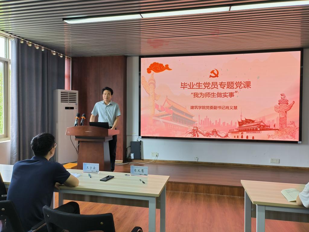 为进一步深入贯彻中央八项规定精神学习教育,增强毕业生党员的党性修养,把好学生党员的“出口关”,6月5日,建筑学院在16教314举办“我为师生做实事”毕业生党员专题党课暨党性教育活动。本次党课由学院党委副书记肖义慧主讲,全体毕业生党员参加本次党课学习。