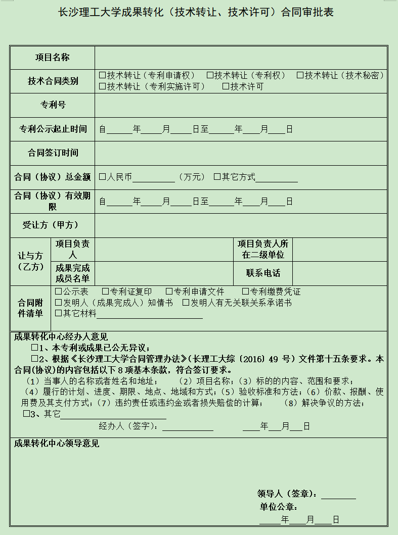 云顶国际vip8866成果转化(技术转让、技术许可)合同审批表