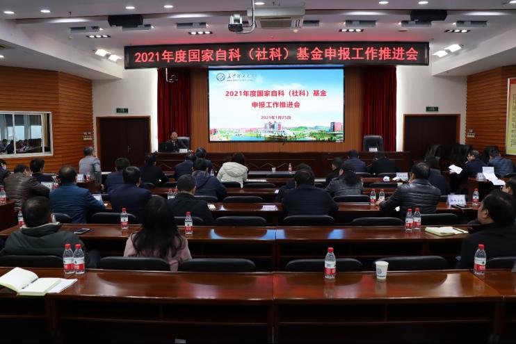 2021年1月25日下午,学校在云塘一办9楼会议室召开2021年度国家基金申报工作推进会。校长曹一家、副校长曾祥君,科研部部长王磊、社科处处长刘建江,各二级学院党政负责人、科研副院长等60余人参会,副校长曾祥君主持会议。