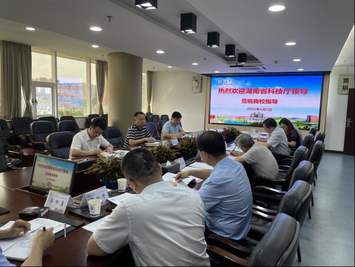 6月7日下午,湖南省科技厅二级巡视员彭敬东一行3人莅临云顶国际vip8866,对湘江实验室建设工作进行调研。中国工程院院士郑健龙,副校长曾祥君、黄创霞,科研部、成果转化中心及相关学院负责人参加此次调研。