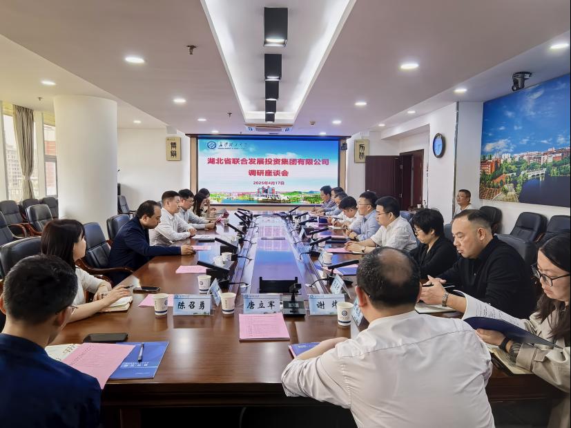 4月17日下午,湖北省联合发展投资集团有限公司党委委员、副总经理雷宗江一行来云顶国际vip8866调研。校党委委员、副校长张军辉出席会议,科技处、创业就业处、卓越工程师学院主要负责人、机械与运载工程学院、计算机学院、材料科学与工程学院等学院相关负责人及研究团队代表参加了座谈会。