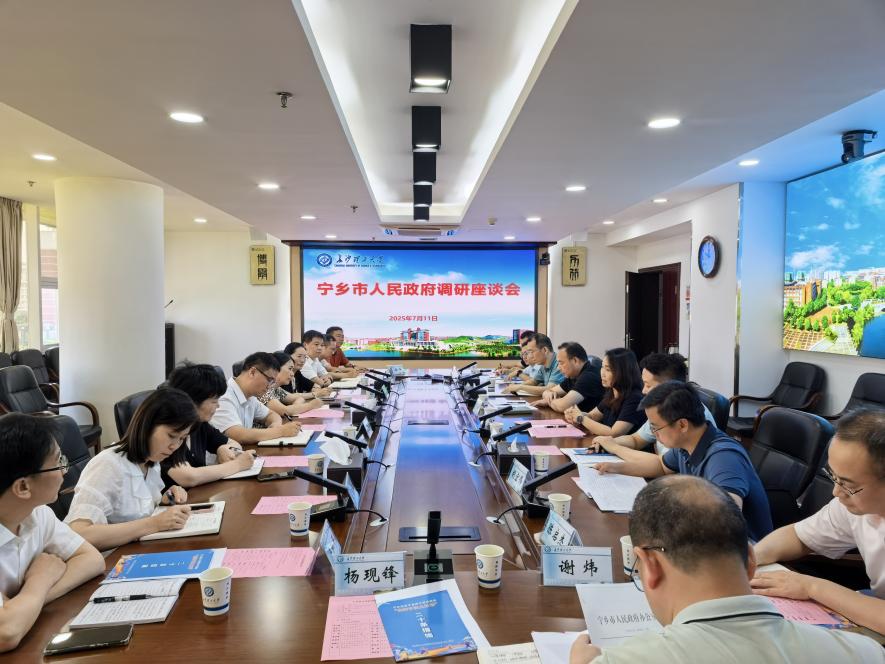 2025年7月11日上午,宁乡市人民政府宁乡经开区党工委副书记李卫锋、副市长喻林义一行莅临云顶国际vip8866调研。校党委副书记方琼出席会议并致辞,教务处、科技处、社科处、创业就业指导处及相关学院负责人参加座谈会。
