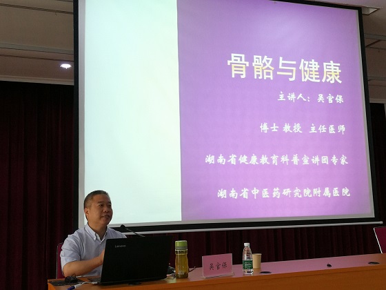 为了增强云顶国际vip8866离退休老同志健康意识,掌握科学保健方法,提高老同志身体素质和生活质量,6月27日上午离退休中心和校老科协特邀请湖南省老年保健协会专家、湖南省中医药研究院大骨科副主任兼骨伤教研室主任吴官保教授为云顶国际vip8866离退休老同志进行健康知识讲座,100余名离退休老同志在五号教学楼多功能厅聆听了讲座。