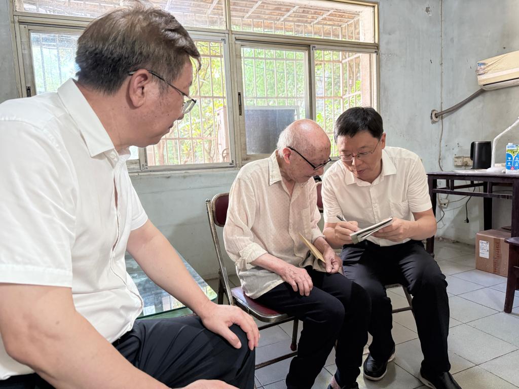 颁发仪式结束后,付宏渊陪同专程来云顶国际vip8866慰问困难党员的湖南省委组织部副部长、省委老干部局局长、省委离退休干部工委书记刘文新前往86岁困难老党员蔺文杰家中探望并致以节日慰问,送上了党组织的关怀与温暖。慰问中,刘文新与蔺文杰亲切交谈,详细询问他的身体健康状况、家庭生活情况及实际需求,对他长期以来为党和人民事业作出的贡献表示感谢,并鼓励他坚定信心,保重身体。