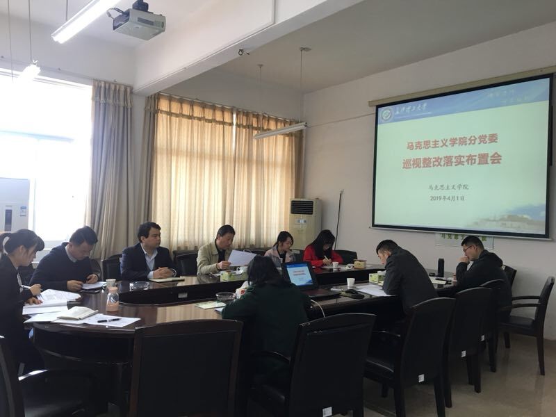 2019年4月1日上午9:00,马克思主义学院党委在文科楼B602会议室组织召开了党建工作巡视整改落实布置会。会议由学院党委书记易显飞主持。学院党委组织员周展、办公室主任平伟军、教职工支部书记以及学生支部书记参加会议。