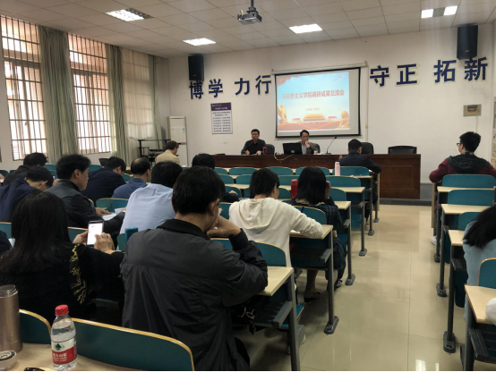 最后,陈万球院长对本次调研成果交流会和主题教育理论测试进行了总结,希望全院教师共同努力,共同推进“调动教师科学研究积极性,推进学科评估上层次”和“习近平新时代中国特色社会主义思想‘三进’及思政金课建设”两大调研取得更加显著的成效,建设更加优秀的马克思主义学院,也希望大家能认真对待主题教育理论的学习,多花时间进行自主学习,牢牢掌握相关理论,从容应对理论考试,交出一份满意的答卷。