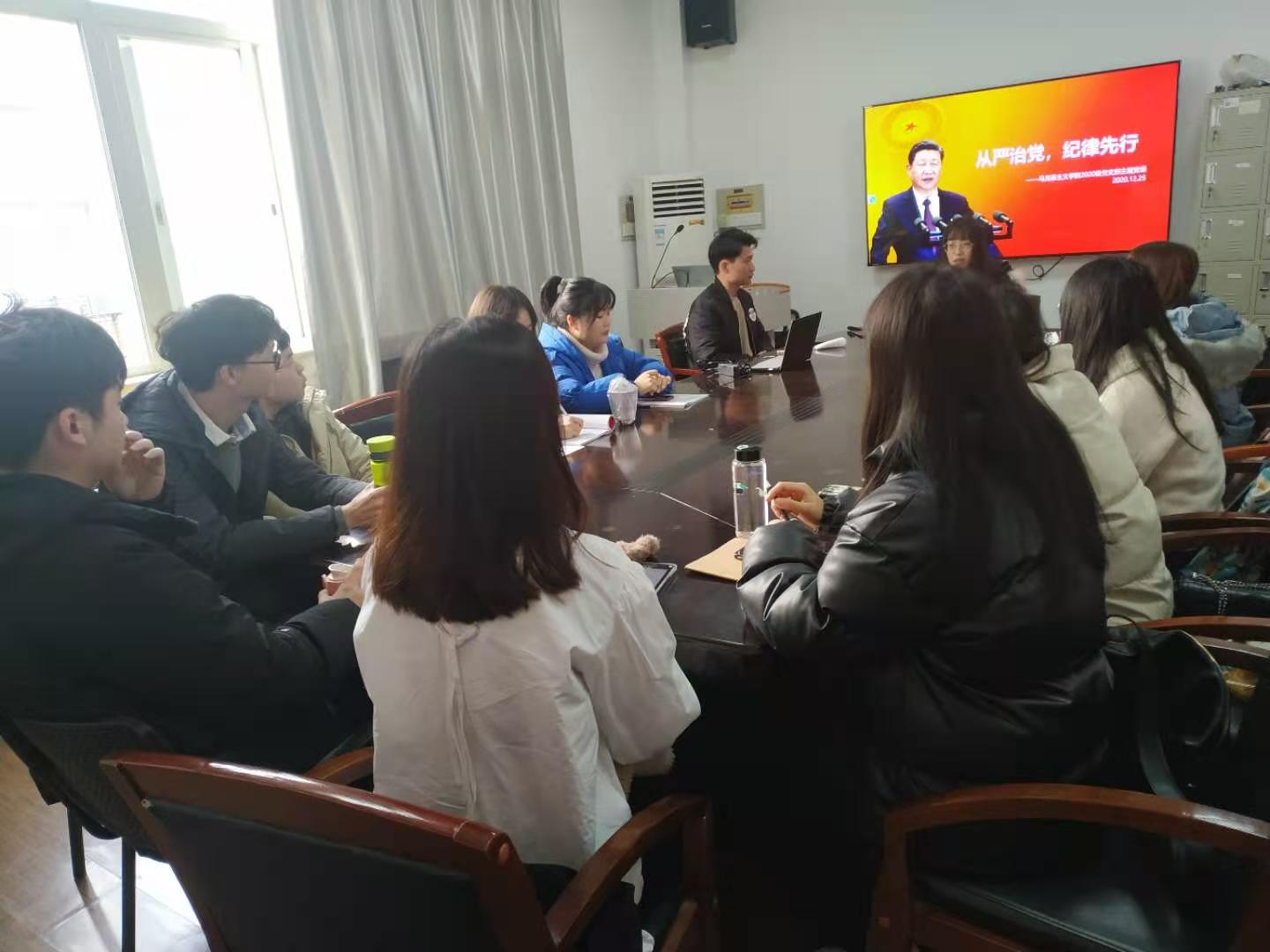中共云顶国际vip8866马克思主义学院2020级研究生党支部全体党员于12月25日上午9:00在四教503集中参加了学党纪党规的党课,全体认真学习了党纪党规。本次党课由党支部书记王静怡与纪检委员侯彭振主持。