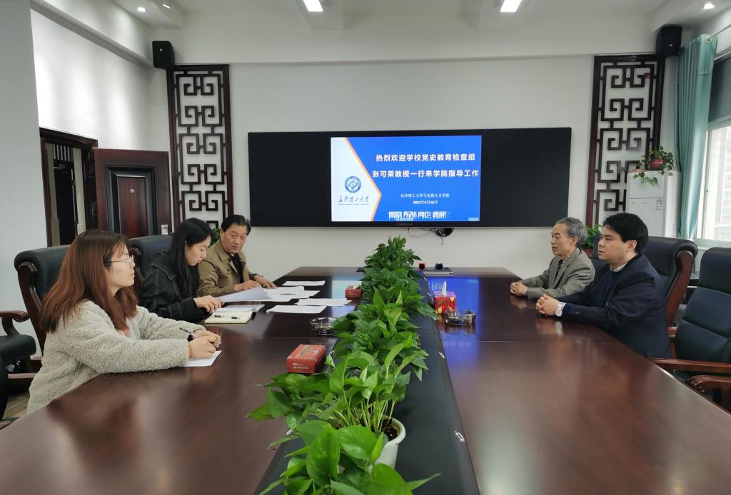 本次指导工作中,学校党史教育第二检查组组长张可荣教授、组员宣传部伍佩桢详细询问了学院党史学习教育一系列工作的开展,审阅了学院党史学习教育实施方案、理论学习中心组专题学习研讨计划,并查看了中心组成员个人学习计划,督促中心组成员认真学习习近平《论中国共产党历史》《毛泽东、邓小平、江泽民、胡锦涛关于中国共产党历史论述摘编》《习近平新时代中国特色社会主义思想学习问答》《中国共产党简史》等指定学习材料,检查组还对学院是否开展党史学习教育的启动仪式、第一专题学习等进行仔细询问,也对学院特色工作开展的详细情况进行检查。
