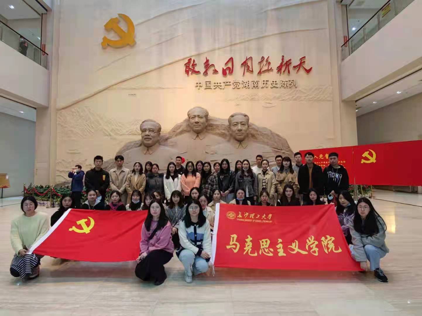 2021年4月18日上午,马克思主义学院2021年上期发展对象党课学习班全体学员前往长沙市望城区湖南党史陈列馆、雷锋生平事迹陈列馆参观学习。