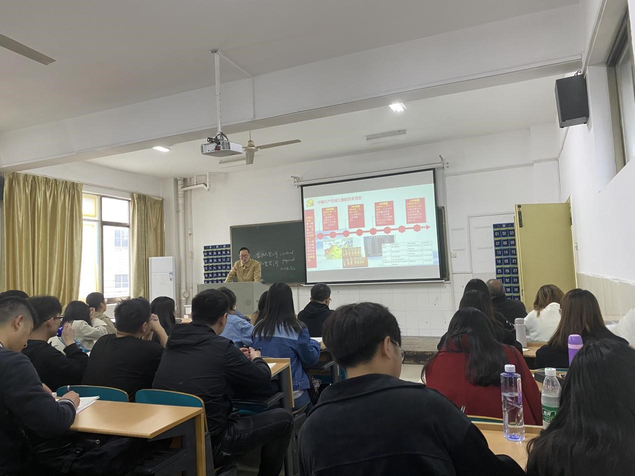 4月27日下午13:00,马克思主义学院2021年上期入党积极分子培训班的第二堂党课在金盆岭校区16教313教室进行。城南学院主任辅导员蔡喜平老师以“中国共产党的百年辉煌”为主题为入党积极分子进行授课,马克思主义学院2021年上期入党积极分子参加。