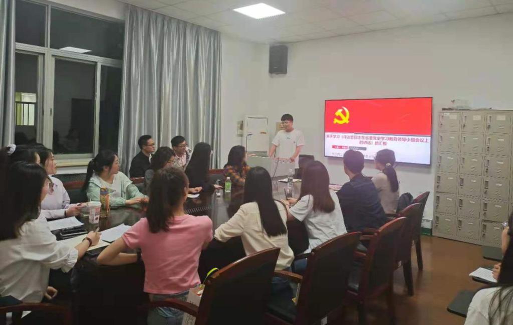 首先,支部书记李袁远同志在会前深入学习讲话精神,作了大量准备工作,会上以关于学习《许达哲同志在省委党史学习教育领导小组会议上的讲话》的汇报为主题,围绕我们为什么要学习这个讲话、对讲话内容本身的归纳总结、学习收获心得及总结等三个方面道出了自己在学习中的所感所悟。他指出,学习这个讲话是由我们“爱学习”“爱党”“爱红色”的三重身份决定的,是由党的发展需要决定的,更是由党自身发展的规律和个人学习的规律决定的。他认为讲话内容主要从三方面展开。第一,讲话伊始就锚定了方向,明确了要求。第二,讲话中提到要辩证的看待前段时间的工作,发扬优势,改进薄弱环节。第三,根据实际情况阐明了下一步的具体工作举措。此外,他号召大家在态度上提高政治站位,在学习上做到自觉主动学习,在工作中做到脚踏实地、认真负责,真正成为守初心、担使命、传播正能量的时代新人。全体成员在支部书记李袁远同志的领学下感触良多,既扎实了理论基础也提高了党性修养。