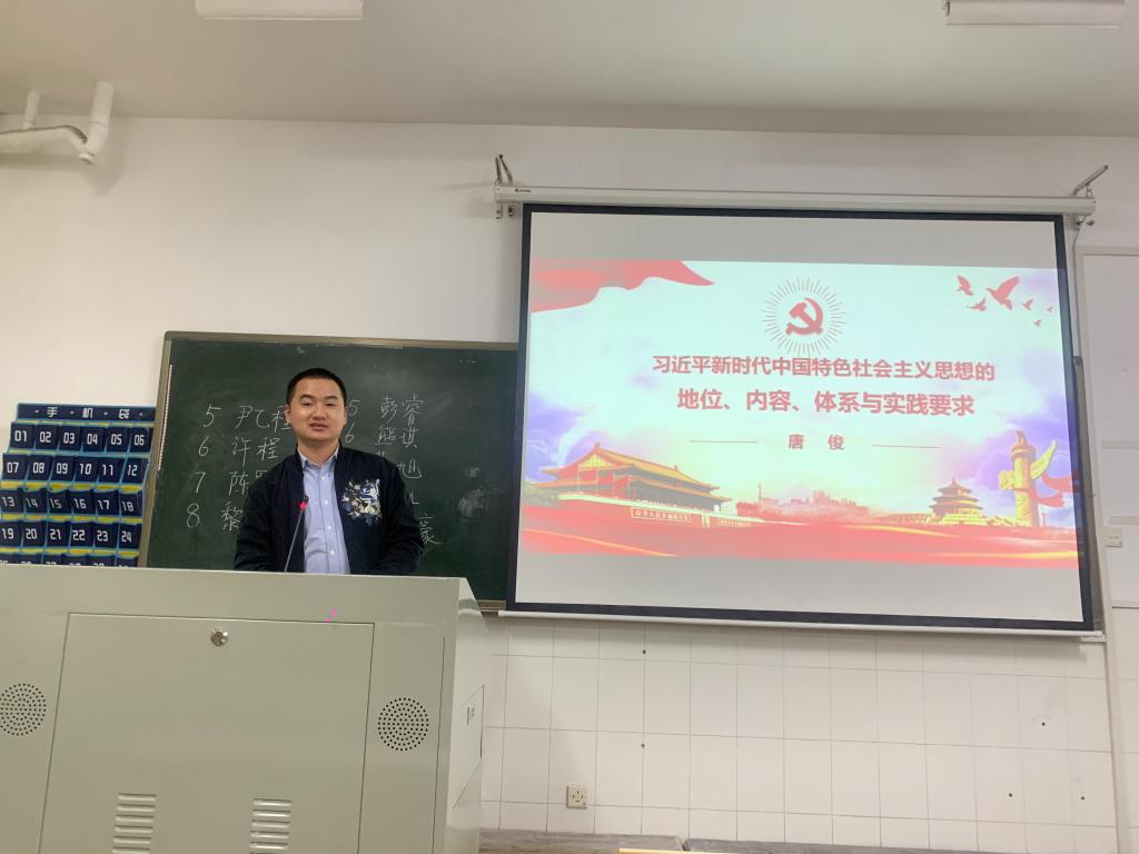 此次课主要围绕习近平新时代中国特色社会主义思想的历史地位、主要内容、科学体系和实践要求四个部分来展开论述。唐俊老师首先采用问答式方法,从如何学习习近平新时代中国特色社会主义思想导入,接着重点讲授了习近平新时代中国特色社会主义思想的主要内容,包括“八个明确”与“十四个坚持”,最后为我们讲授了全党全国人民要坚持以习近平新时代中国特色社会主义思想为指导,为实现中华民族的伟大复兴的中国梦而继续奋斗。