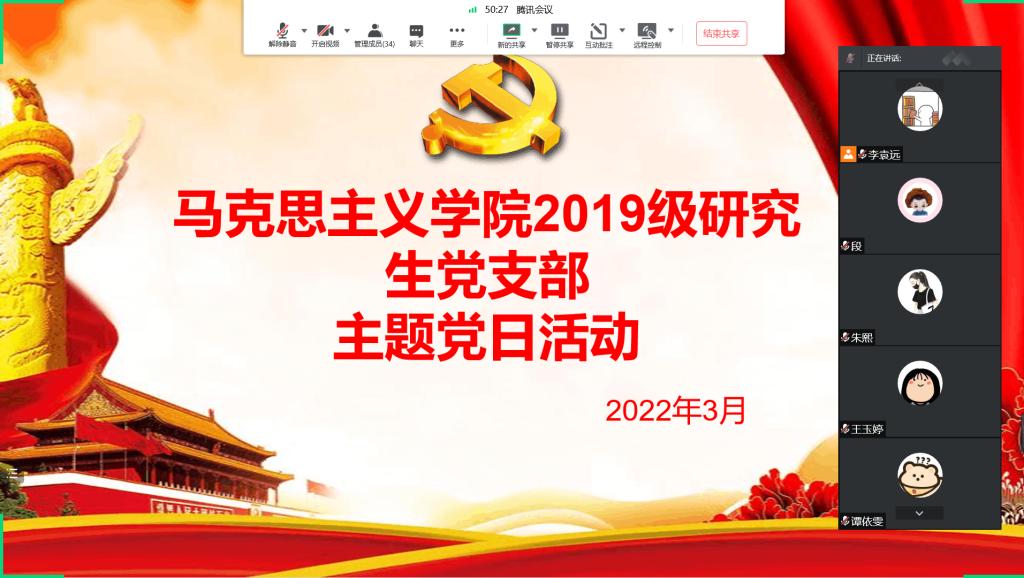 根据学校和学院的相关安排和统一部署,结合支部实际情况,于3月24日晚上7:30我们支部在线上组织开展了三月份的主题党日活动。会议由支部书记李袁远同志主持,支部全体党员同志参加。