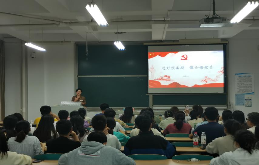 在本次教学课上,庄奕老师从接收新党员要有预备期、预备党员在预备期间需要注意的几个问题、预备党员转正的程序、党员的教育管理等四个方面详细阐述了预备党员应当如何正确对待预备期。首先,庄老师从“预备期”这个非正式阶段出发,向同学们系统地解析在成为正式党员之前设置预备期的缘由及其意义;其次,她将预备党员在预备期中可能遇到的问题同具体案例相结合,使大家对入党时间与党龄起始时间的确定、党费交纳、预备党员与正式党员权利和义务的异同等问题有了深刻的印象;再次,她全面地介绍了预备党员转正的主要程序,而后告诫同学们时刻要以党员的标准严格要求自己,将入党之时的初心与使命铭记于心;最后,庄老师提出,“组织上入党一生一次,思想上入党一生一世”,预备党员要积极向党组织汇报自身的思想情况,自觉同以习近平同志为核心的党中央保持高度一致。