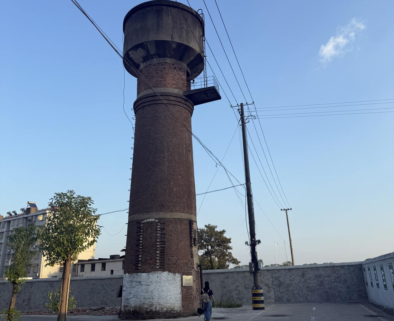 随后,实践团来到原中国人民解放军146师师部水塔旧址。社区工作人员介绍道,1970年冬,146师为建师部水塔,将原糖厂的烟囱顶部拆除,保存下部做为水塔的基座,由146师后勤部组织施工,在原烟囱基座上建成师部专用水塔。2019年2月,这个具有历史意义的标志性建筑,被列为湖南省文物保护单位永久性保存。水塔旧址作为过去的见证,对其进行保护就是为了军垦精神更好的传承下去。实践团成员感慨,水塔虽已不用,但实实在在见证了军垦人的付出,这种实干精神,比书本上讲的更让人受触动。