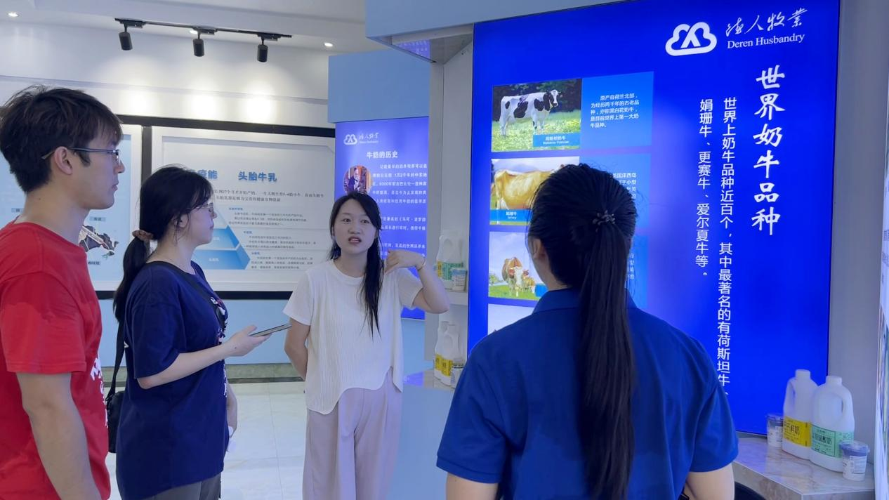 随后,实践团走进上优食品科技有限公司。负责人详细介绍企业的发展历程、特色经营模式及历年发展成果,并带领成员们走进了生产车间和应用实验室,参观自动化铝罐酸奶全自动生产线。参观结束后,实践团与企业负责人开展座谈。“我们秉持‘靠党兴企,以德兴业’的理念,同时建立了一套完善的从奶牛养殖、生产加工、乳品检测、全程冷链运输到奶吧连锁的质量管理体系,致力于做有益于人类健康的事业。”负责人向实践团分享。同时实践团了解到企业积极推进多种形式的校企合作,打通企业资源与高校人才的链接渠道。