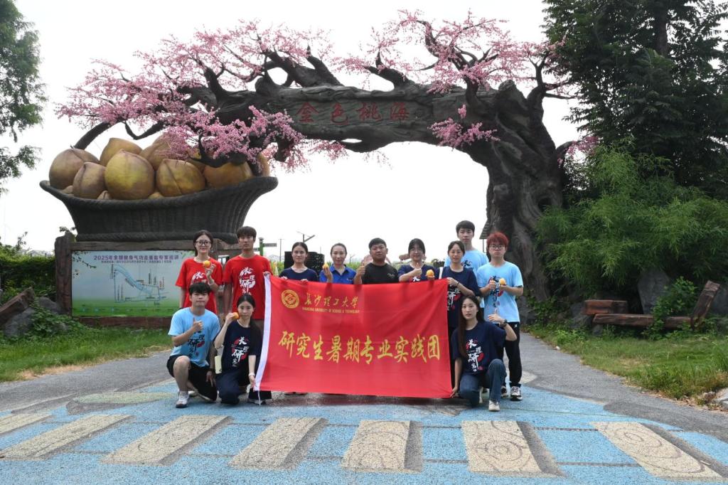 实践团成员走入金色桃海。“我们基地种了10多个品种的桃子,它们分批成熟。这片黄桃刚下树,那片还是小毛桃的是10月份秋桃……”企业负责人带领实践团成员走入350亩金色桃海,看桃树、摘桃子、品桃子。负责人介绍,桃子“种植周期短、挂果出品快”,金色桃海不断优化种植技术,特别注重绿色生态,积极融合文旅,打造了“三月桃花节”“中小学校研学基地”等,在实现企业增收的同时赋能乡村文化发展。